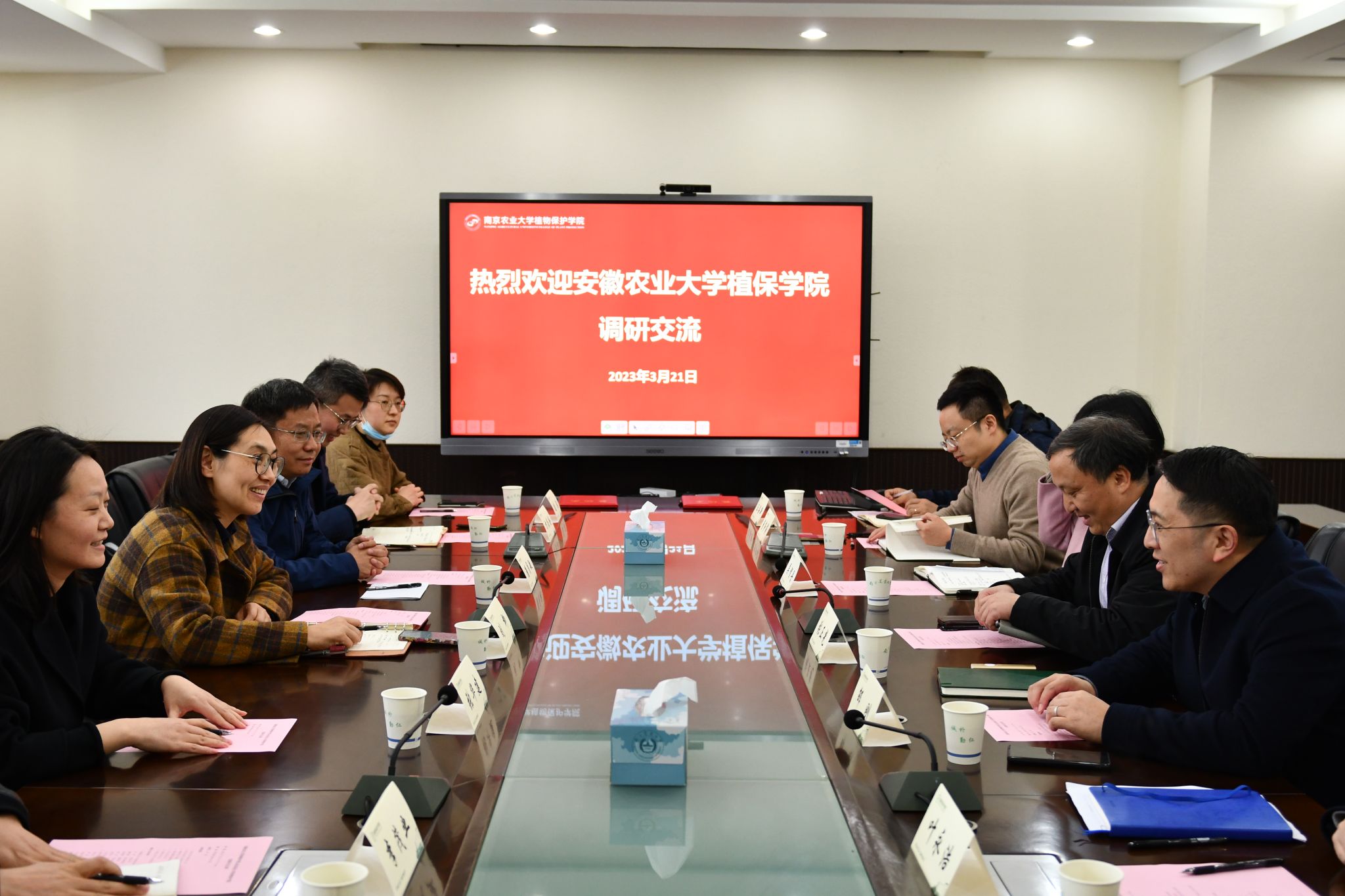 本网讯 3月21日,植物保护学院党委书记刘柳一行赴南京农业大学植物保护学院,就党建思政、人才培养、科学研究等开展深入交流并签署合作协议。南农植保学院党委书记邵刚、院长张正光及班子成员等接待了学院一行。