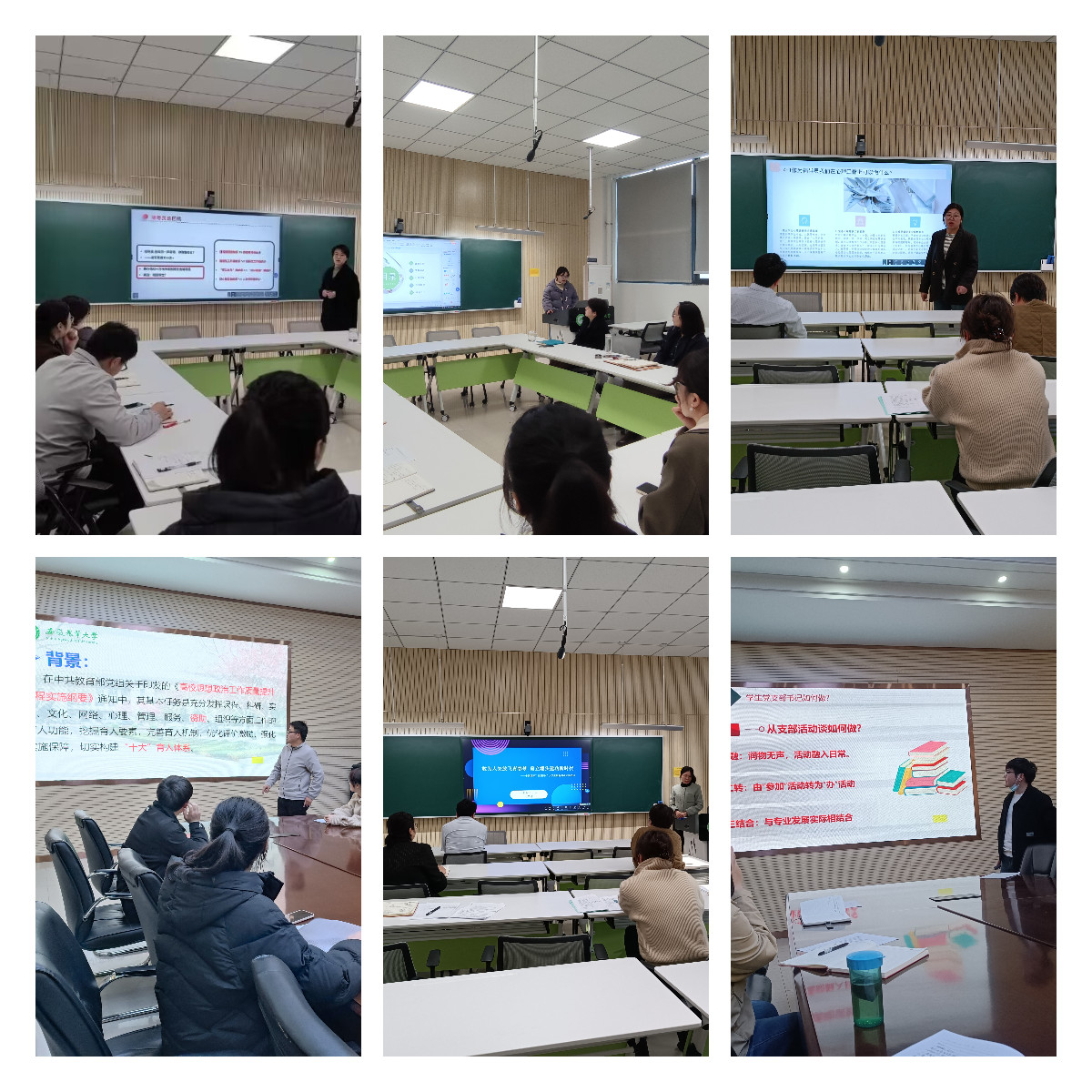 会上,两名专职辅导员先后围绕《情理两维度在辅导员工作中应用的思考》《辅导员工作心得体会与思考实践》作了主题PPT报告,与会老师围绕学生教育管理服务中相关思考与问题进行了讨论交流。