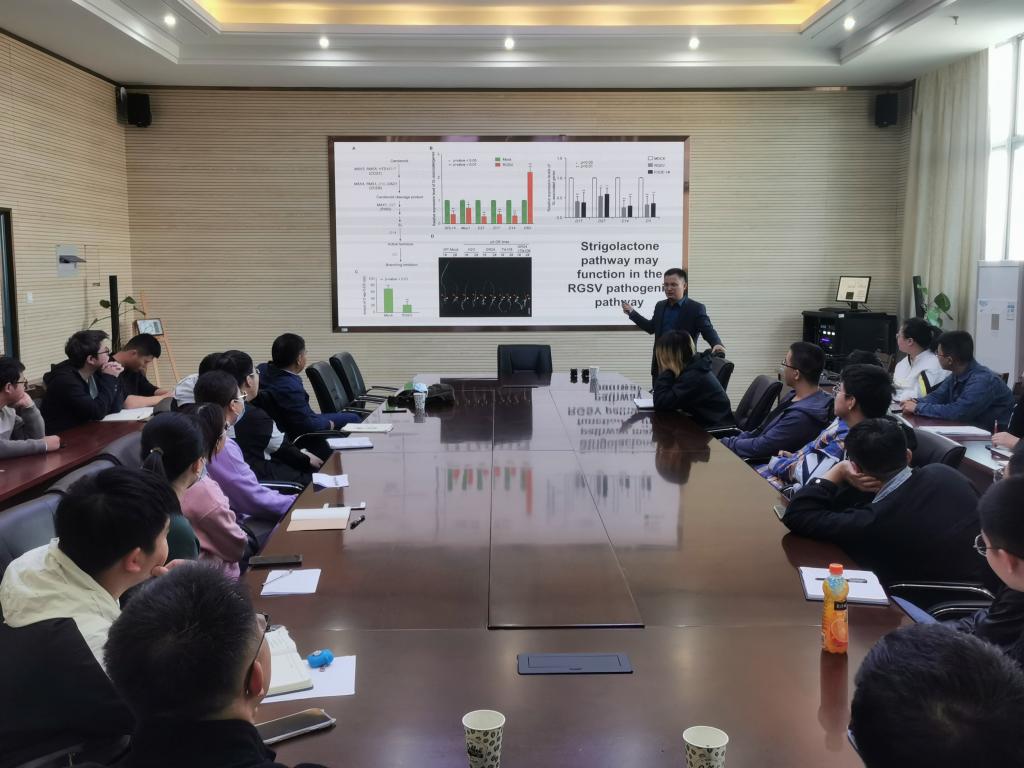 24日上午,吴建国教授在中西部综合楼1213会议室为学院师生做了题为“水稻抗病毒与病毒致病”的专题报告。报告由副院长张华建和植病系教授江彤主持,各系青年教师以及研究生出席了报告会。吴建国教授以水稻病毒为研究对象,深度解析了水稻AGO蛋白的抗病毒机制、microRNA对病毒侵染的影响,并对水稻抗病基因工程做了展望。随后吴建国教授以自身的求学、科研与工作经历为切入点,与参会的青年教师分享了科研的心路历程,鼓励青年教师找准研究方向,戒骄戒躁,不断提高“讲故事”的能力,现场的老师同学对此进行了热烈的讨论。