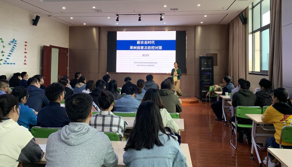 本网讯 10月11日,植物保护系列学术报告(九)于中西部大楼1201会议室举行,学院邀请西北农林科技大学黄丽丽教授作题为“新农业时代果树病害及防控对策”的学术报告,植物保护学院相关教师、研究生参与交流学习,会议由常务副院长潘月敏教授主持。