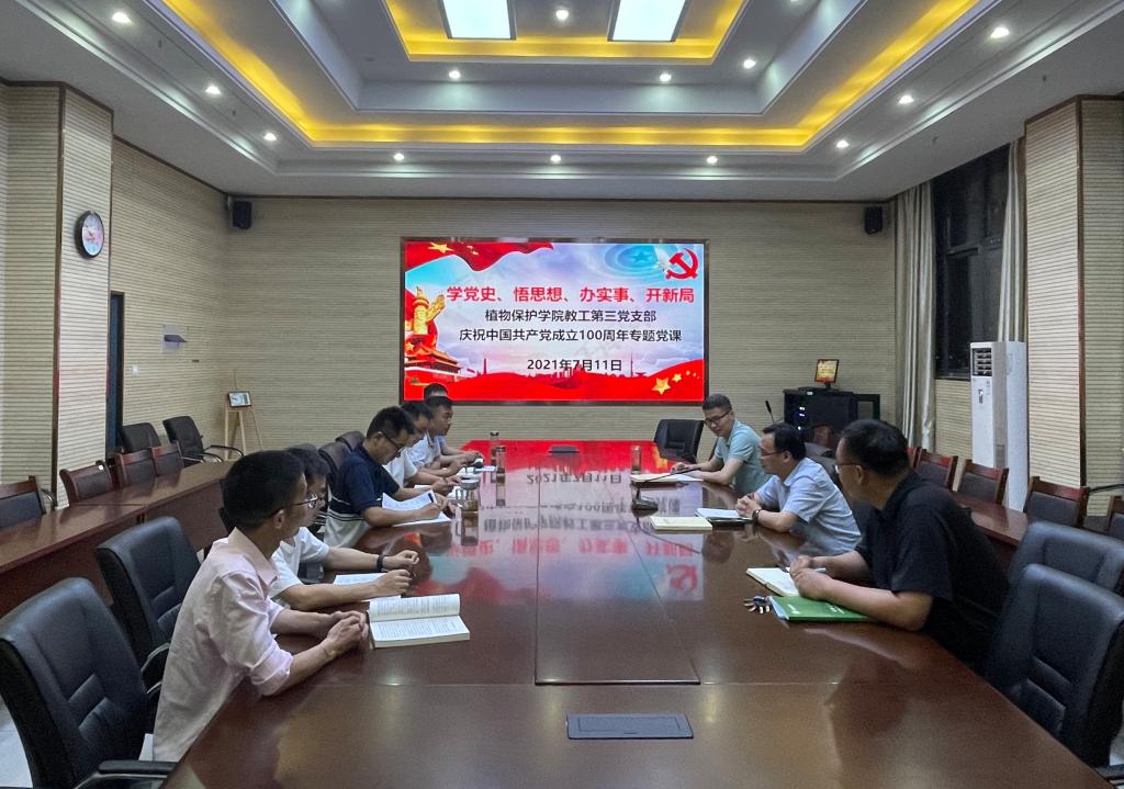 本网讯 7月11日晚,植物保护学院教工第三党支部在中西部大楼1213会议室举行“学党史、悟思想、办实事、开新局”主题党日活动。校党委常委、副校长、学院院长操海群以普通党员身份参加了活动,并为支部党员讲授“七一”专题党课。