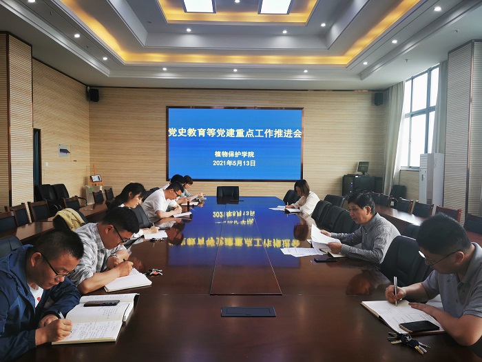本网讯 为深入推进党史学习教育等重点工作,5月13日,植物保护学院召开会议,对党史学习教育等重点工作进行再推进、再培训。学院领导班子、各支部委员、系主任、党政办公室人员参加会议。会议由学院党委书记张平主持。