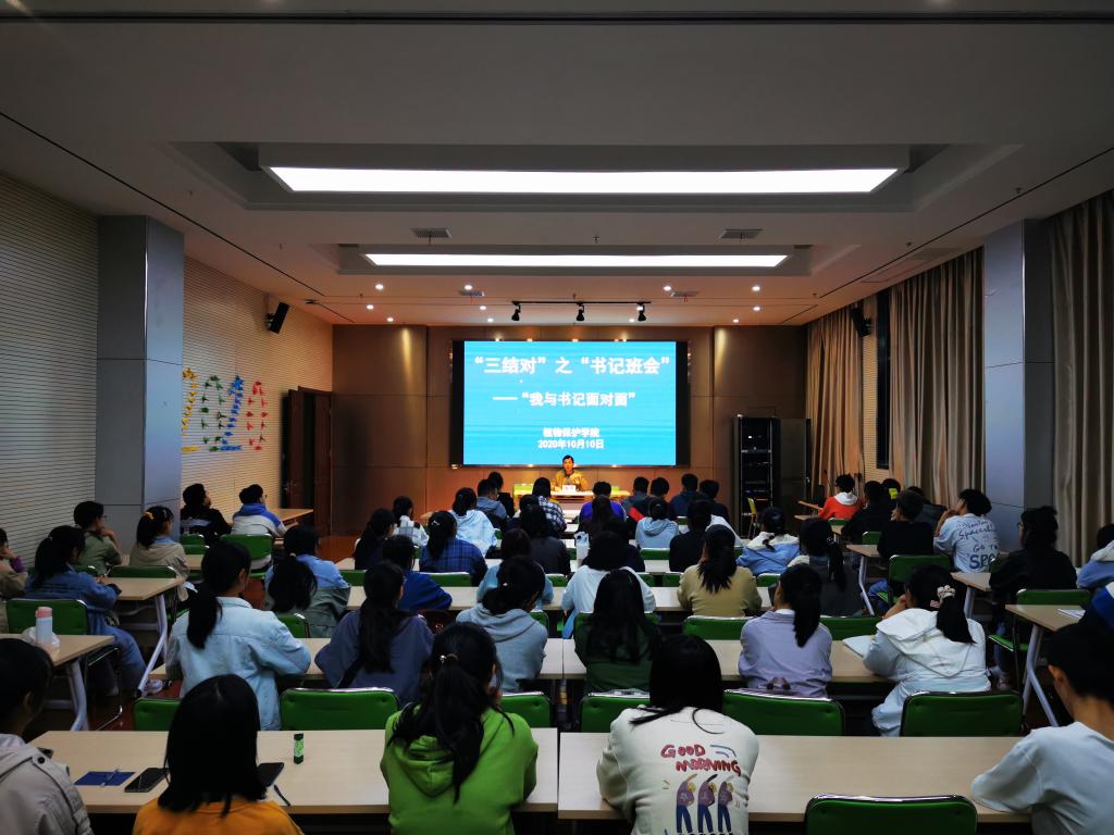 10月10日晚,学院党委书记张平给结对的2020级植保1、2班同学举行“书记班会”,教育学生树牢理想信念、家国情怀和强农兴农使命意识,引导学生增强对学校学院的价值认同、情感归宿,帮助学生确立个人目标、找准学习方法。10月21日,学院拓展“三结对”形式,举办“高层次人才谈植保”专题报告会,邀请学院新进的陈雨教授、曹志超教授为全体2020级新生作报告。两位教授围绕“我为什么选择安农植保”“植保是什么、能做什么”以及“植保的未来”,与同学们深入交流讨论。
