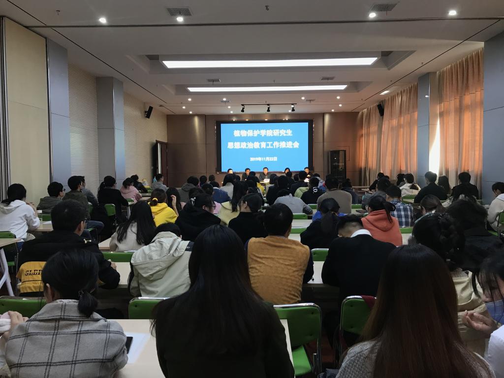 本网讯 11月22日,植物保护学院召开研究生思想政治教育工作推进会。学院党委书记檀根甲,校党委研工部副部长宋燕平,学院副院长潘月敏、研究生导师代表郭敏以及学院全体研究生参加会议。会议由院党委副书记、纪委书记、副院长戴照力主持。