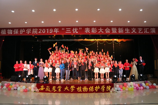 本网讯 11月10日晚,植物保护学院2019年“三优”表彰大会暨新生文艺汇演在欣苑学生活动中心举行。校党委常委、副校长操海群和学工部(处)部长彭庆刚、招生就业处处长刘海涛、校团委副书记任琪以及学院班子成员参加活动,为受表彰的学生集体和个人颁奖。