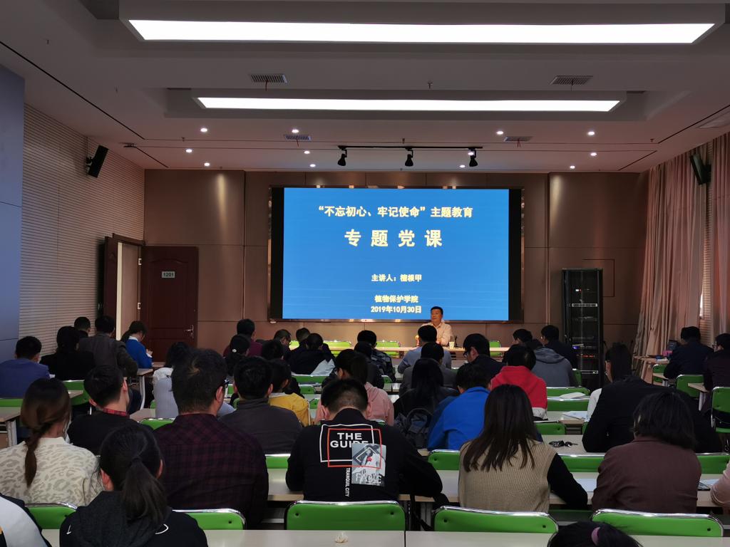 本网讯 10月30日下午,院党委书记檀根甲在学院1203报告厅作“打铁必需自身硬,做‘四有’好老师——树起新时代合格党员的旗帜与标杆”专题党课,学院全体师生党员到场学习。