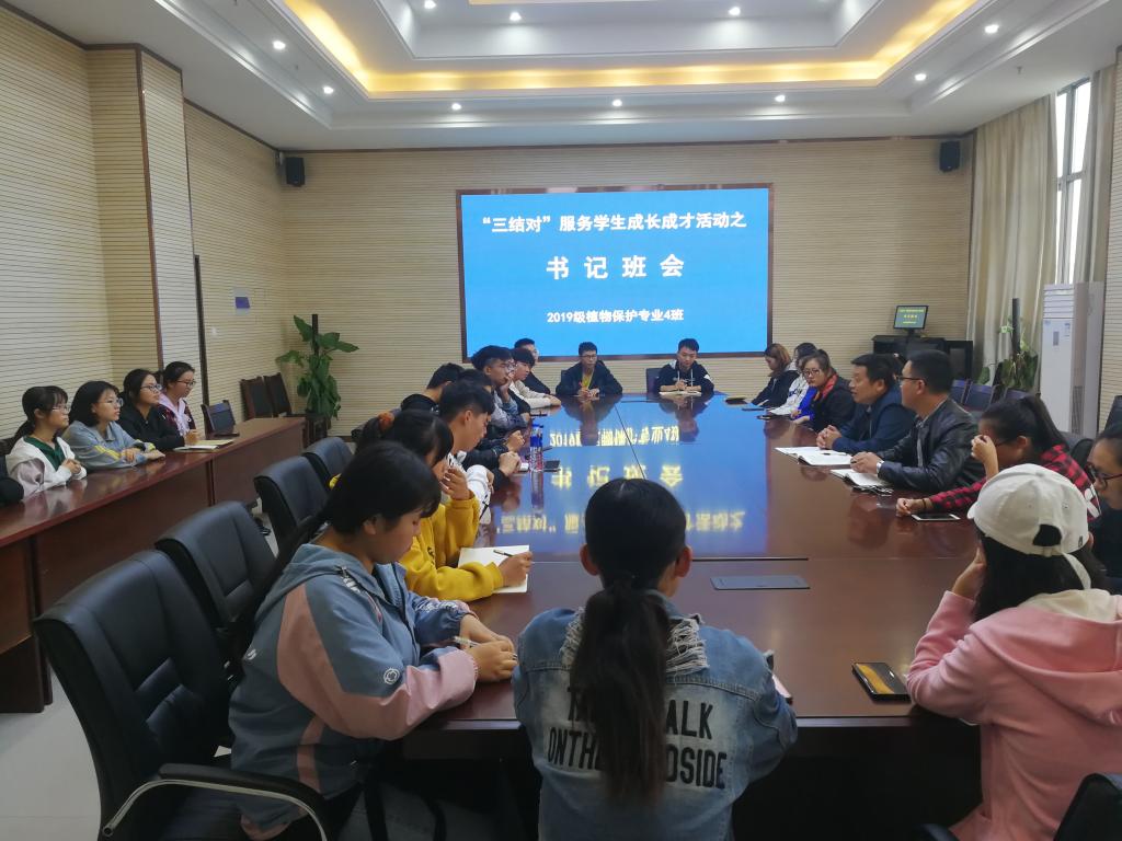 本网讯 近日,植物保护学院党委书记檀根甲和党委副书记、纪委书记、副院长戴照力,分别组织召开结对班级的主题班会,与2019级新生面对面交流。一名院领导结对一个新生班级,是学院“三结对”服务学生成长成才活动的内容之一。