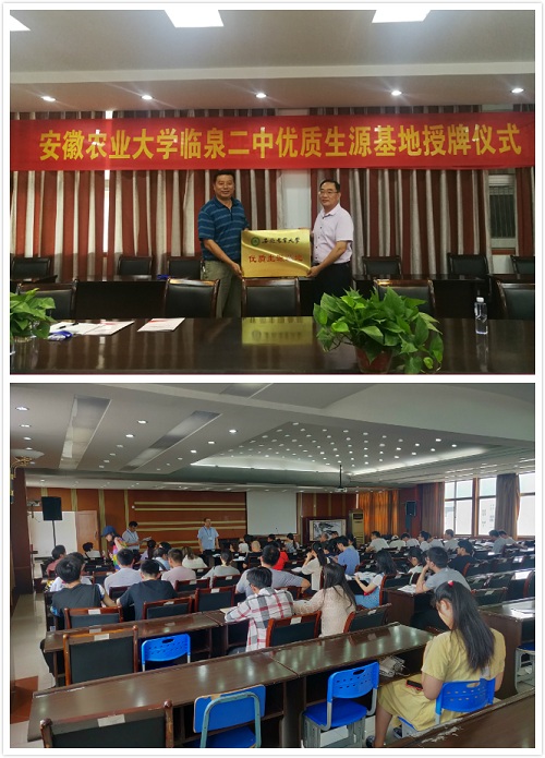 突出特色,多种形式,高水平开展招生宣传工作。学院有机结合学校学院特色和专业特点,特别邀请多名教授以座谈交流、科普讲座等形式推介学校办学历程、教研成果、整体办学条件、特色学生活动等,此外精心选拔我院部分生源地学生为兼职工作人员跟队与报考学生进行深入的沟通交流。主动走访省级示范高中,并与临泉县第二中学签约挂牌,新增1所共建优质生源基地。在各咨询会现场,工作组通过解读我校招生政策、发放宣传材料、现场答疑等多种形式,紧紧抓住学校学院行业优势,采取“以学校学院办学特色吸引考生、以周到的咨询服务感动考生”的宣传策略,充分展示学校学院办学风采,多渠道多形式广泛宣传我校招生政策,全力吸引优质生源报考我校。