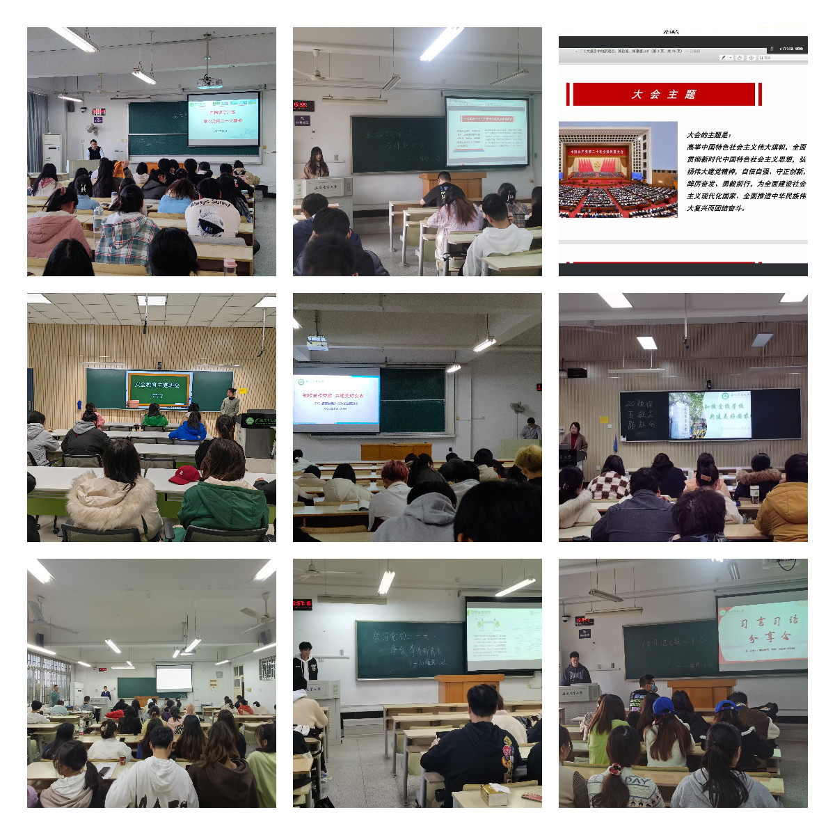 注重思想引领,开展主题教育。根据校《关于开展2022年秋季学期学生主题班会的通知》要求,本科生班级辅导员通过学习二十大精神主题班会观摩活动、前期精心策划,认真组织实施,在班级中召开了“学习党的二十大,争做有为新青年”主题班会系列活动。包括辅导员指导、学生干部领学、班级共同学等多种方式,部分班级结合安全主题教育、爱校荣校教育合并开展,旨在引导广大青年大学生深刻领会、准确把握党的二十大精神,将党的最新理论成果和实践经验有机地融入到日常的学习和生活中,争做知农爱农新型人才。