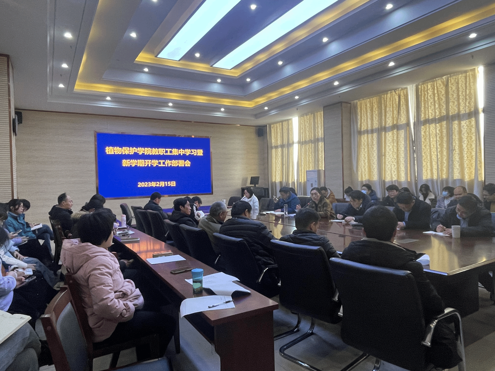 本网讯 2月15日下午,植物保护学院在中西部综合楼1213召开全体教职工大会,部署新学期开学工作。学院党政领导、全体教职工参加会议。会议由学院党委书记刘柳主持。