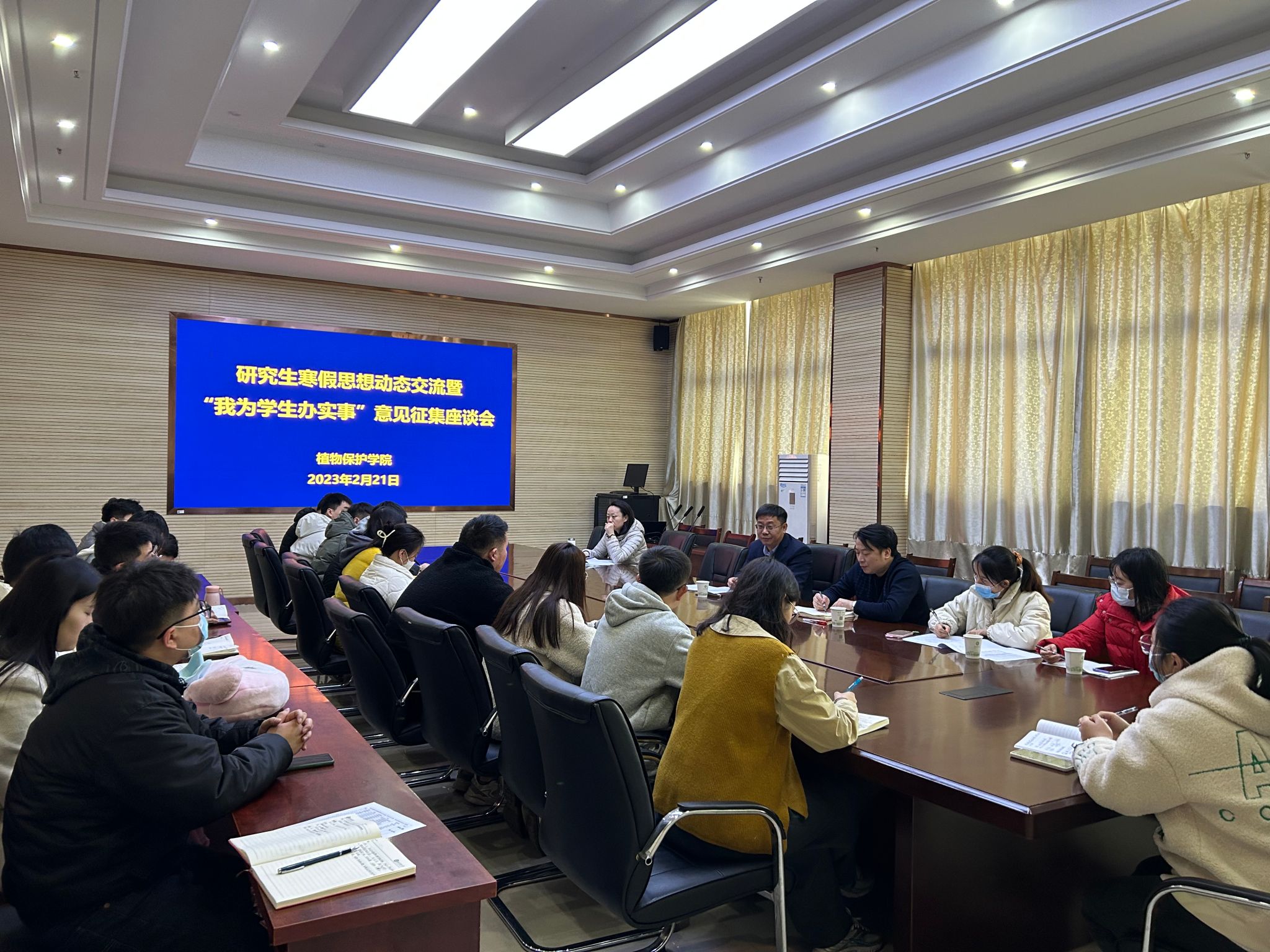 聚焦办实事,广渠道收集意见建议。学校印发“我为学生办实事”意见征集通知后,学院领导班子带头落实“一线工作法”,在学生开学报到当日深入各年级学生宿舍走访,开展了“1+2+N”新学期第一期植保夜话。在“开学窗口期”,于20-21日相继召开本科生和研究生寒假思想动态调研暨“我为学生办实事”意见征集座谈交流会,同时面向全体同学发布调查问卷,广渠道面对面听取学生思想动态,一一回应反映的困难问题。