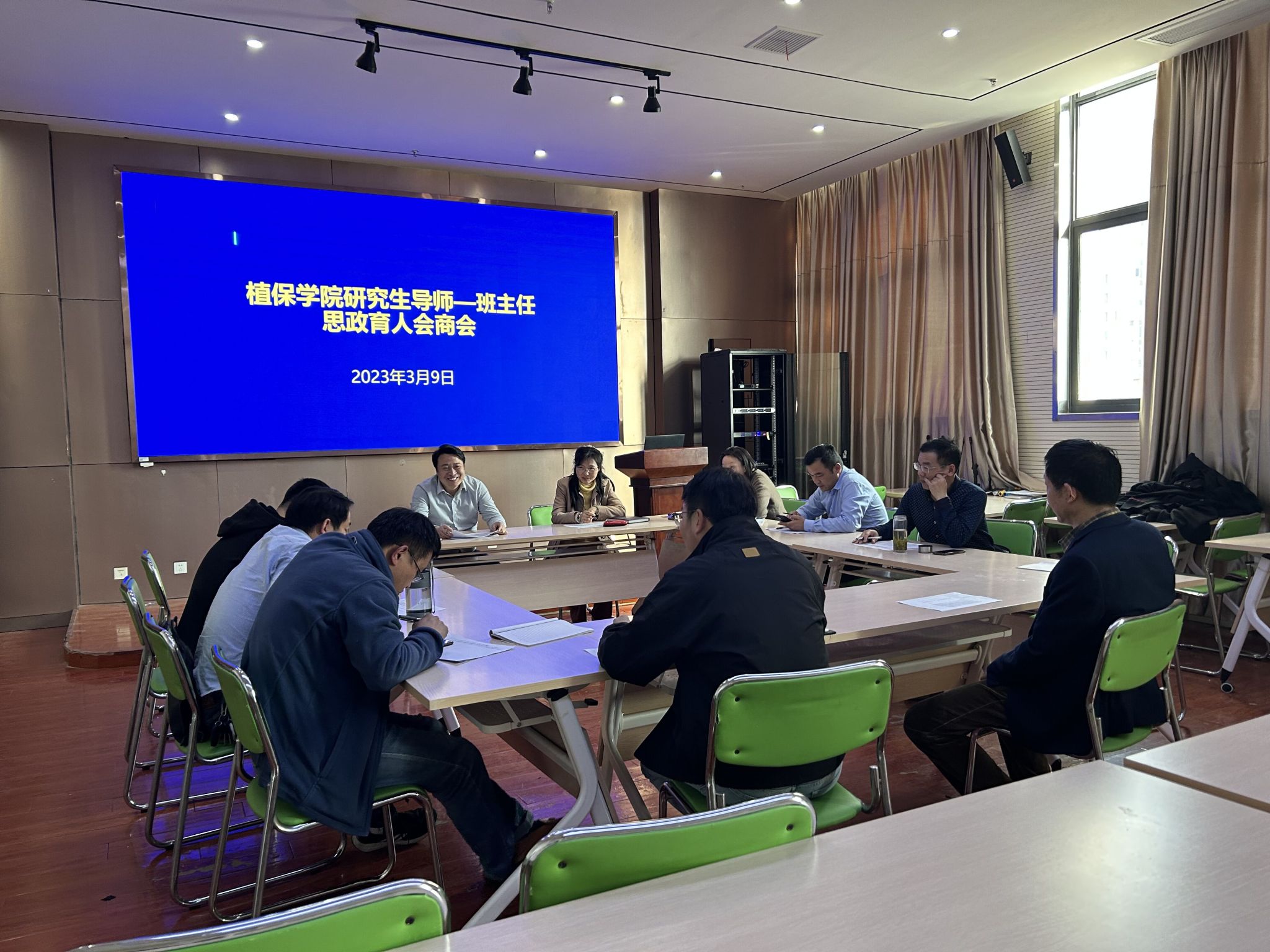 会上,研究生班主任汇报了导师所带研究生在学院、班级的日常表现,导师通报了研究生在实验室的表现、论文写作情况、就业进展情况等,与会人员就学生毕业就业中遇到的困难问题进行了交流讨论。(作者:蒋秋双 一审:丁放 二审:汪小强)