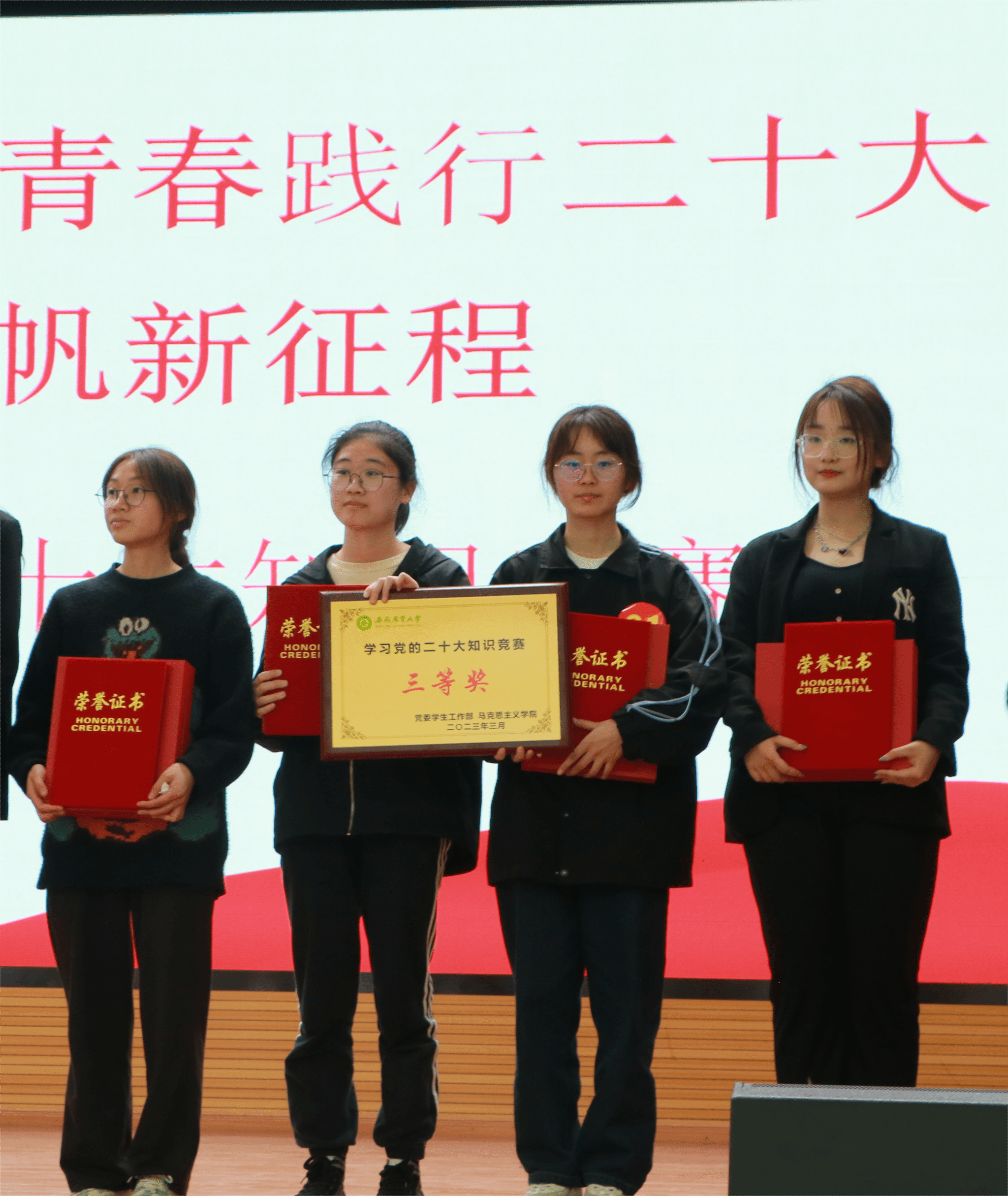 我院4名本科生在“学习党的二十大”知识竞赛决赛中荣获三等奖 发布时间:2023-03-16 浏览次数: 本网讯 经过初赛和复赛,我院4名本科生(2021级植物保护专业林淑琴、聂保婷和2022级植物保护专业赵锦湲、吴若依)于3月15日晚举办的“学习党的二十大”知识竞赛决赛中荣获三等奖。(作者:张小龙)
