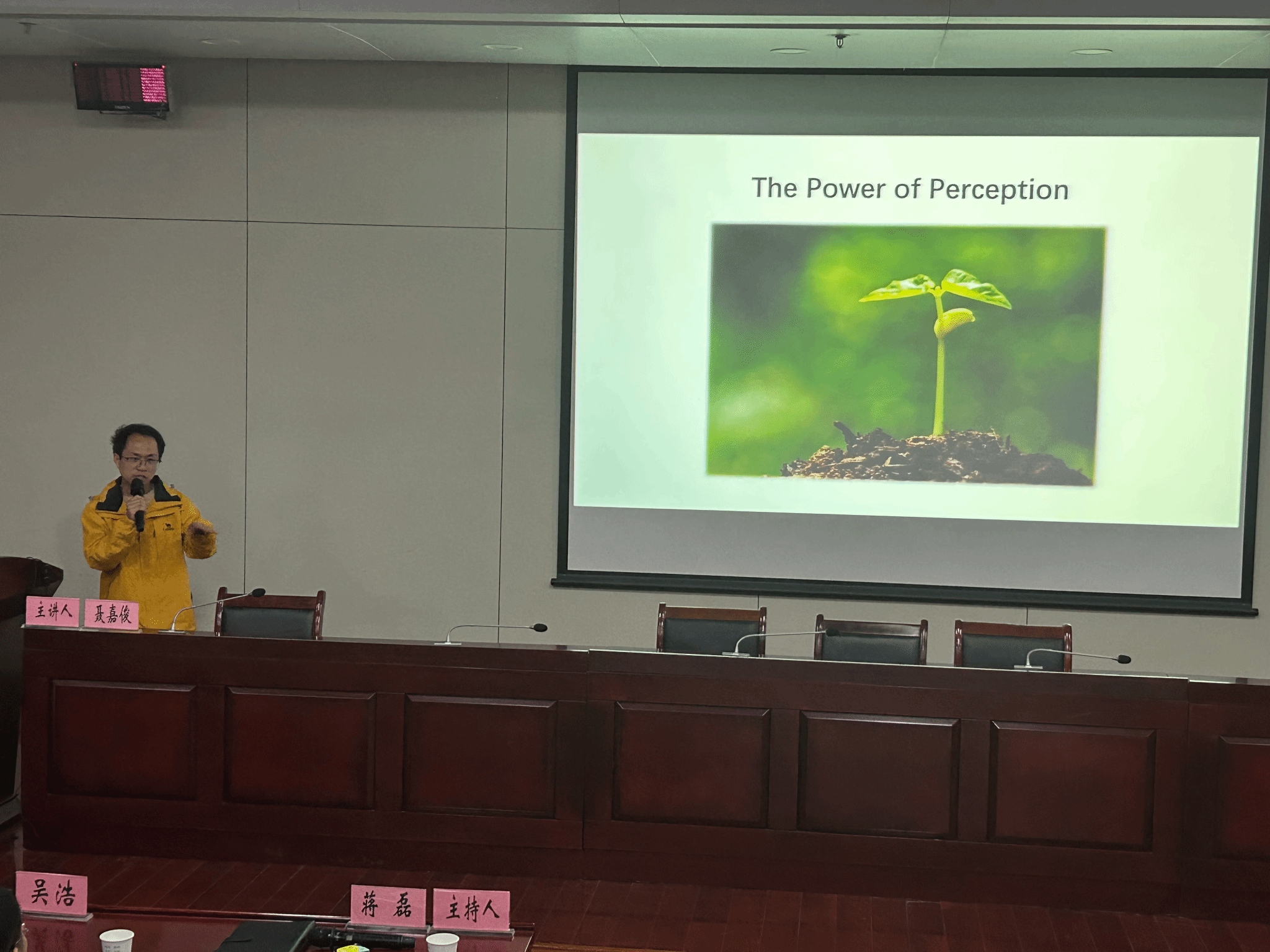 会议还融入思政育人元素,特邀聂嘉俊教授从“如何做科研”出发谈成长感受,他以“生命感知”为切入点展开,结合自身求学成长经历,讲述了自身如何找准兴趣点投身学术研究的奋斗历程,鼓励同学们不忘初心、多思多学、积极主动,努力让“小树苗”终将长成“参天大树”。