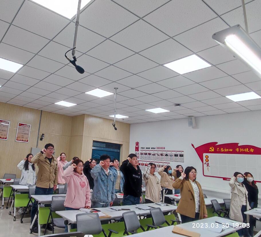“我志愿加入中国共产党,拥护党的纲领,遵守党的章程,履行党员义务,执行党的决定,严守党的纪律,保守党的秘密……”支部书记带领全体党员重温入党誓词,大家目光坚定、神情肃穆,宣誓铿锵有力。庄重的宣誓仪式,是很好的党性教育,在场党员接受了一次思想“洗礼”。随后,支部书记为党员送上“政治生日”贺卡,祝大家“政治生日”快乐,希望永葆党员本色。与会党员同忆入党初心,围绕个人成长、学习工作经历、思想政治学习感悟,分享各自入党的心路历程;支委会认真听取大家的意见建议,全面了解、掌握党员思想、学习、生活等方面的情况。全体党员真挚表达了对党的感恩之情和新征程上的奋进之志,均表示将进一步坚定理想信念,认清使命责任,不忘党员身份,力争在各自学习、工作中发挥好模范带头作用。
