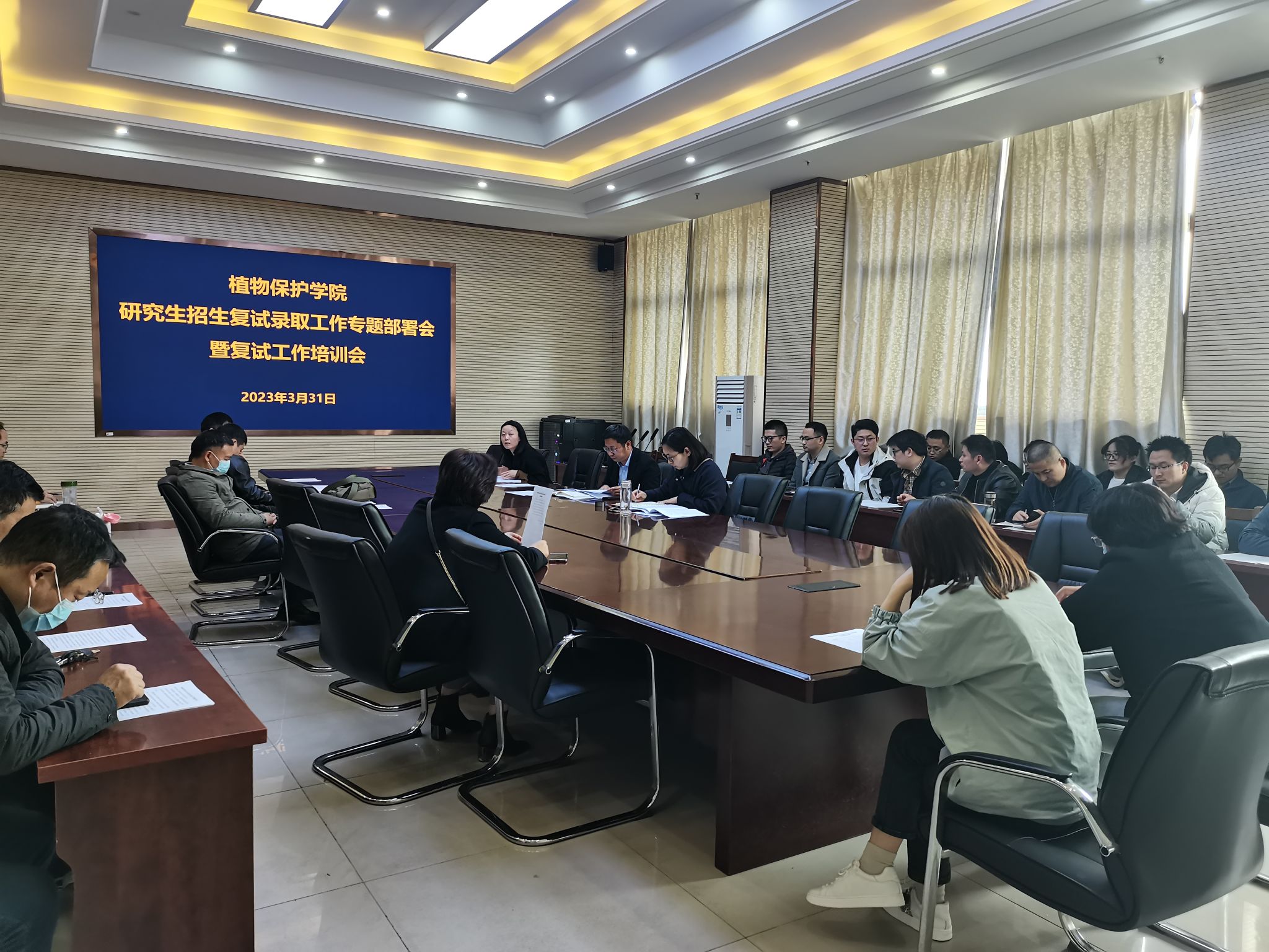 3月31日下午,植物保护学院召开2023年硕士研究生招生复试录取工作专题培训会议,学院党政班子成员、各系部负责人、全体研究生导师、复试相关工作人员参加会议。