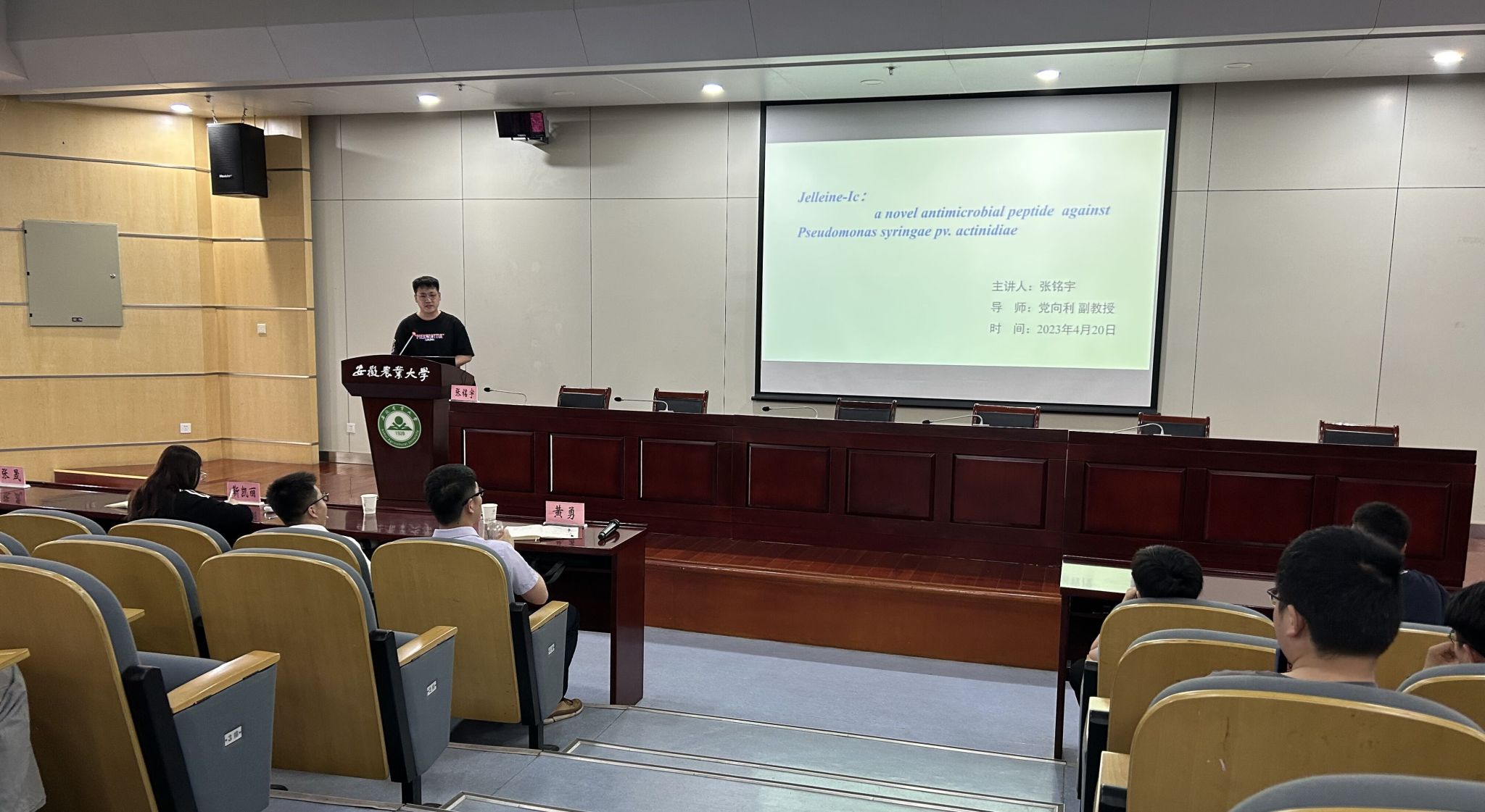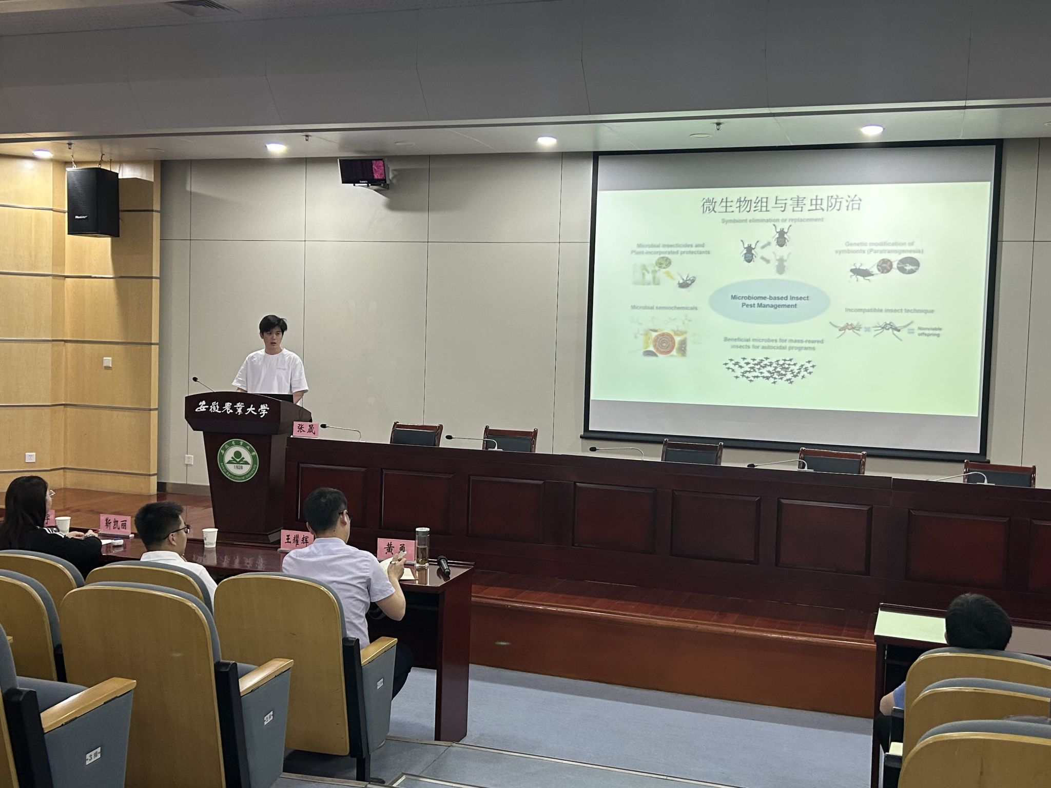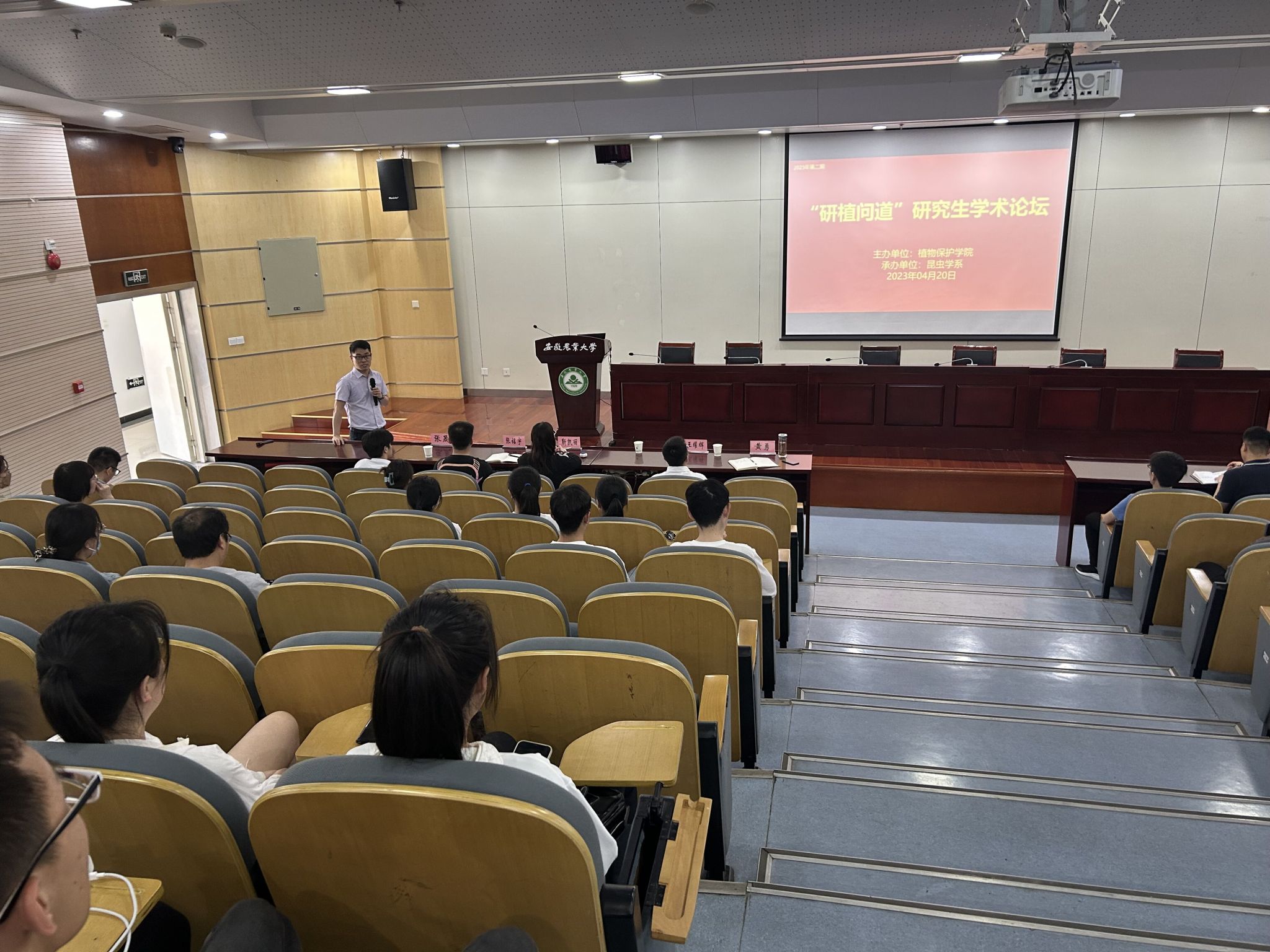 本网讯 为进一步营造良好的学术氛围,提供开放共享的学术交流平台,激发同学们的科研创新能力,促进学术交流、学术碰撞、学术融合,为科研生涯赋能,4月20日下午,植物保护学院在图书馆第二报告厅举行2023年第二期“研植问道”研究生学术论坛。学院分管研究生教育管理工作副书记汪小强、昆虫学系教师和研究生以及部分本科生参加论坛。论坛由昆虫学系副主任黄勇主持。