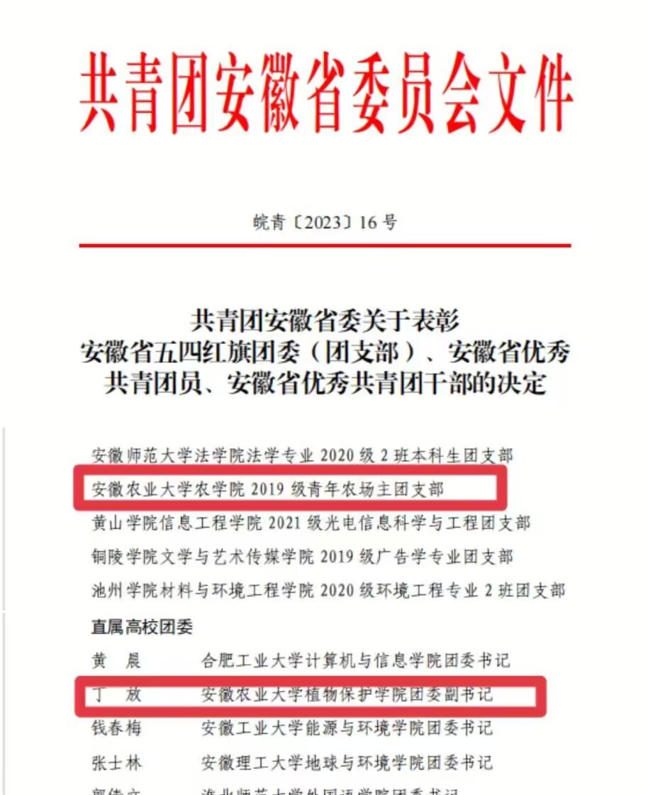 喜报-我院团委副书记丁放荣获全省优秀共青团干部 发布时间:2023-05-05 浏览次数: 近日,共青团安徽省委发布《关于表彰安徽省五四红旗团委(团支部)、安徽省优秀共青团员、安徽省优秀共青团干部的决定》。学院团委副书记丁放荣获“安徽省优秀共青团干部”。