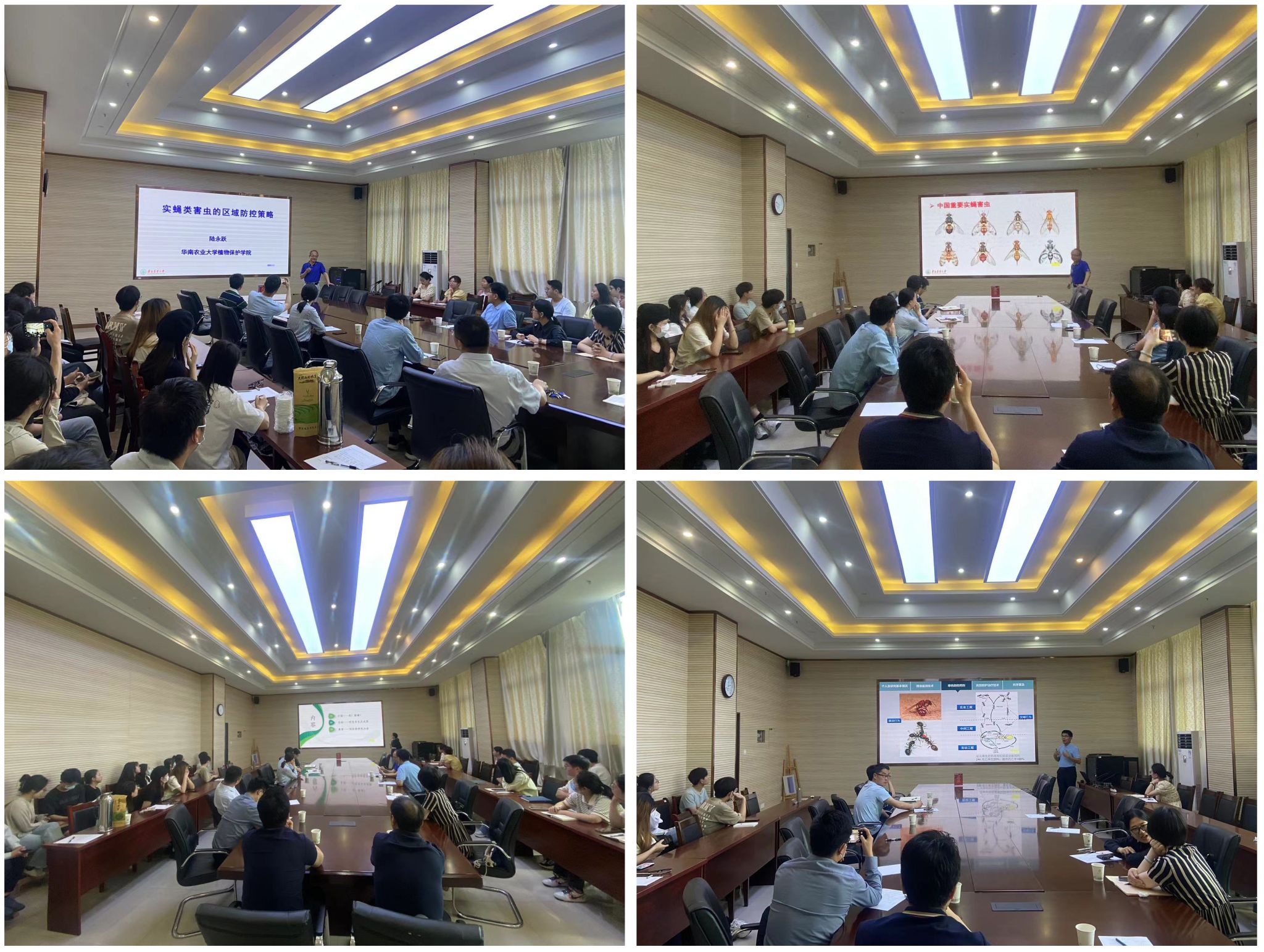 本网讯 5月20日,为扎实推动学习贯彻习近平新时代中国特色社会主义思想主题教育走深走实,运用好贯穿其中的立场观点方法,高质量提升科研水平,推动以学铸魂、以学增智、以学正风、以学促干。植物保护学院邀请到华南农业大学入侵生物学团队陆永跃教授、汪荦荦副教授和王磊博士开展学术交流,昆虫学科教师和研究生参会,会议由副院长张华建主持。