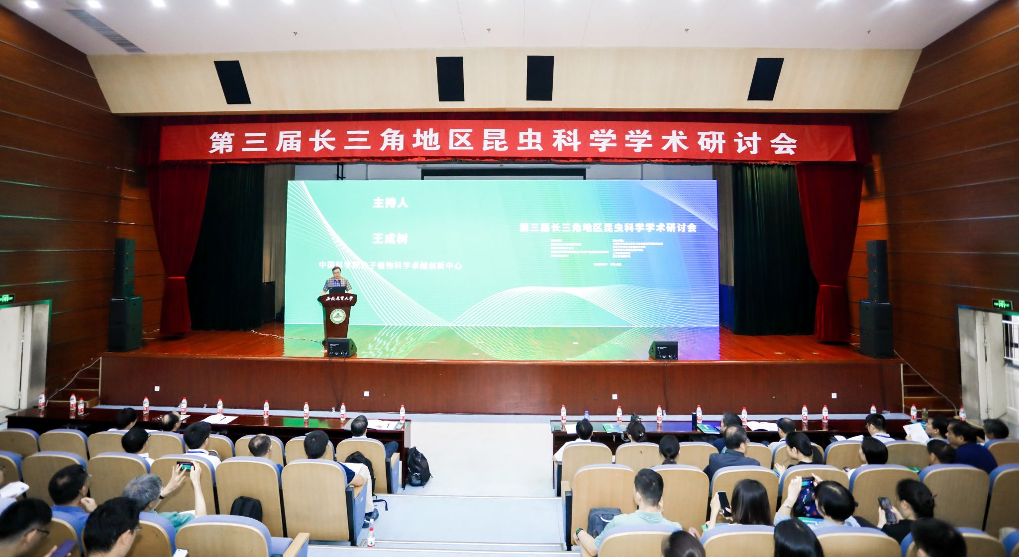 本网讯 6月17日,由安徽农业大学植物保护学院、安徽省植物保护总站、安徽省农业科学院植物保护与农产品质量安全研究所、安徽省昆虫学会主办的“第三届长三角地区昆虫科学学术研讨会”在我校图书馆第一报告厅召开。来自中国科学院昆虫发育与进化生物学重点实验室、浙江大学农业与生物技术学院、南京农业大学植物保护学院、上海市昆虫学会、浙江省昆虫学会等近200名专家学者、科研人员出席会议,3万余人次线上收看直播。