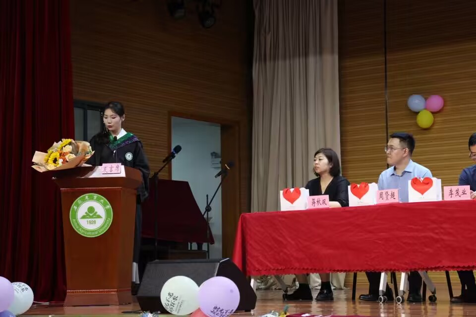 学院党委书记刘柳寄语植保毕业学子要有“善良”“勇气”“梦想” ,继续传承植保“老一辈”敢为人先、敢闯敢干的优良传统,厚植安农情怀、练就兴农本领,践行扎根祖国大地保丰收的初心使命。常务副院长潘月敏希望同学们坚定信仰,做一个有理想信念的青年人;脚踏实地,做一个有过硬本领的青年人;志存高远,做一个有担当作为的青年人。副院长唐庆峰宣读了省级和校级双优生名单。会上,研究生导师代表陈雨、本科生辅导员代表周贤超、本科生毕业班学生代表王冰洁、研究生毕业班学生代表张齐分别作了发言。
