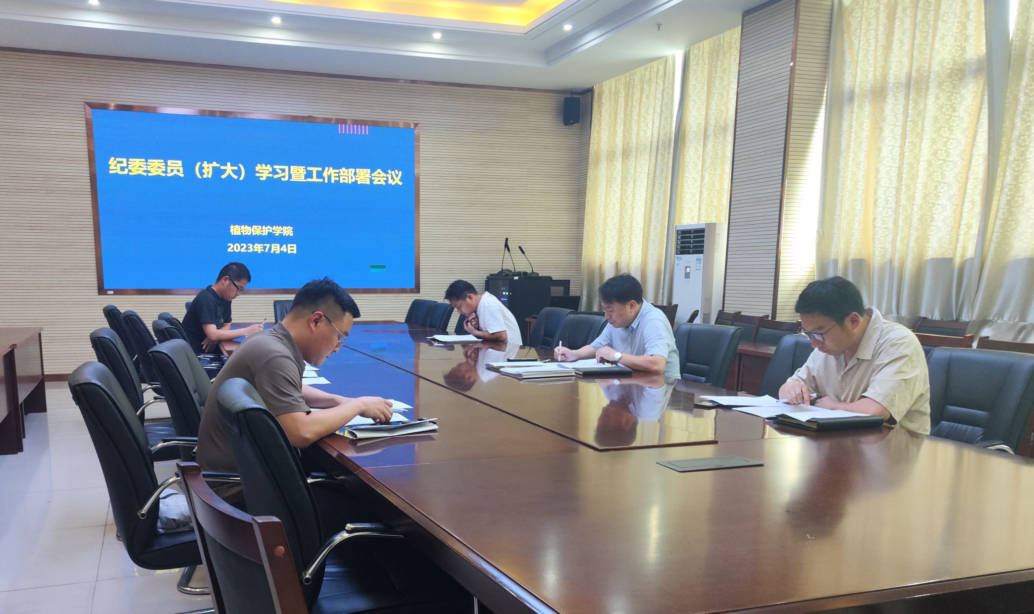 本网讯 7月4日下午,植物保护学院在中西部综合楼1213会议室召开纪委委员(扩大)学习暨工作部署会议。会议由学院党委副书记、纪委书记、副院长汪小强主持。