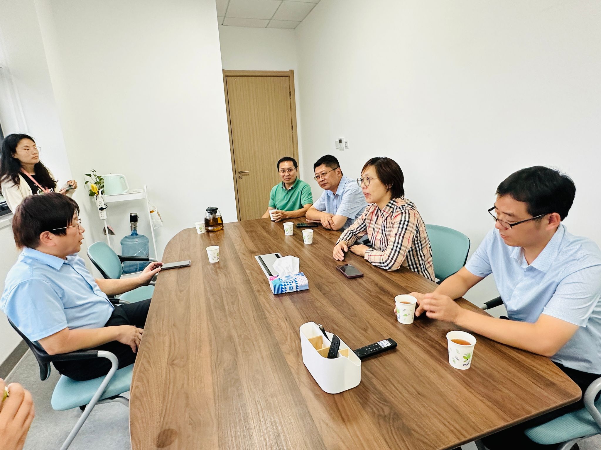 本网讯 9月14日,学院党委书记刘柳带队,副院长唐庆峰、昆虫系主任李茂业、中青年教师刘威教授和王耀辉教授等一行5人,走访中科院分子植物科学卓越创新中心,看望杰出校友并开展座谈交流。中心研究员王成树和王四宝热情接待学院一行。