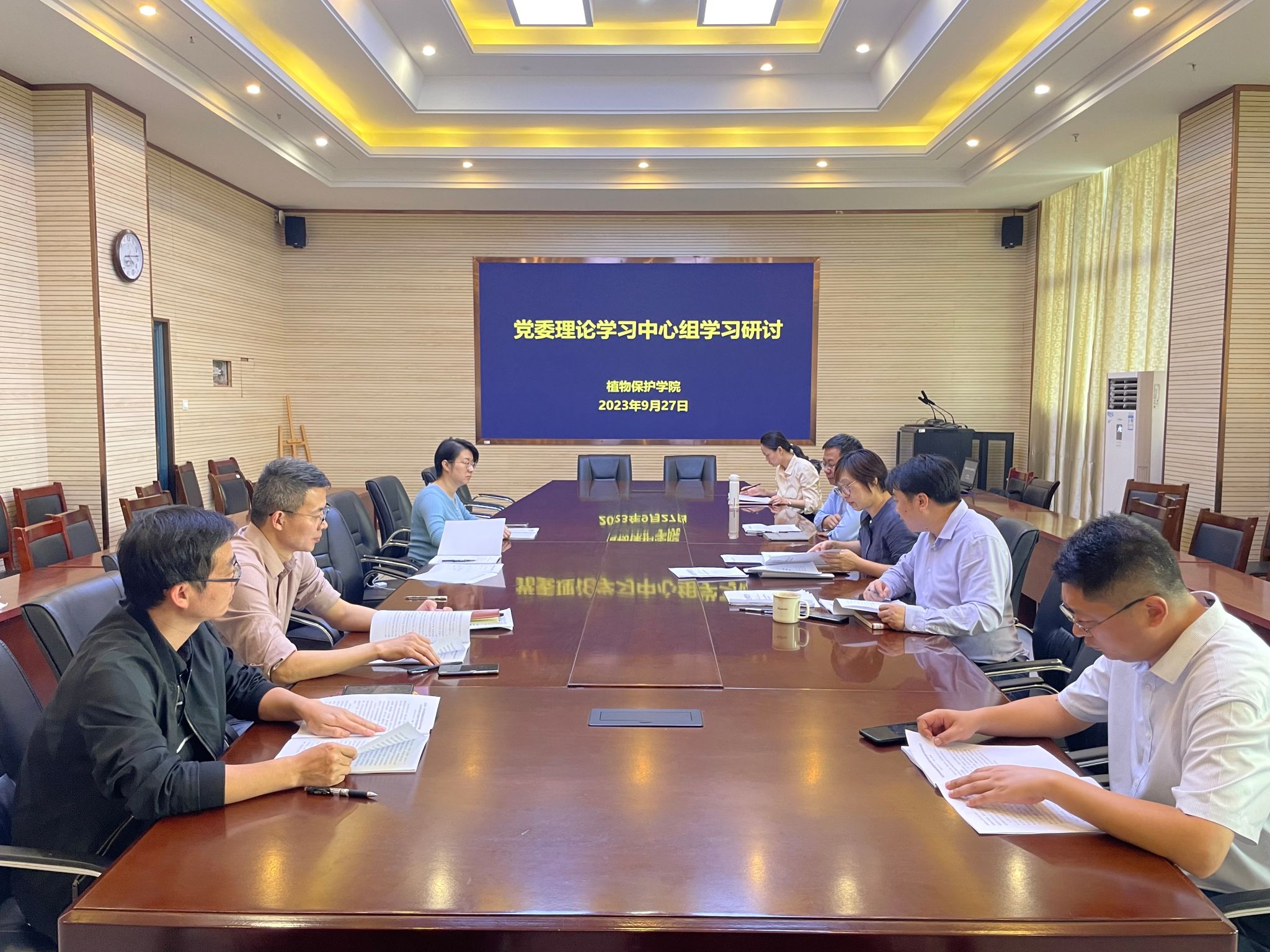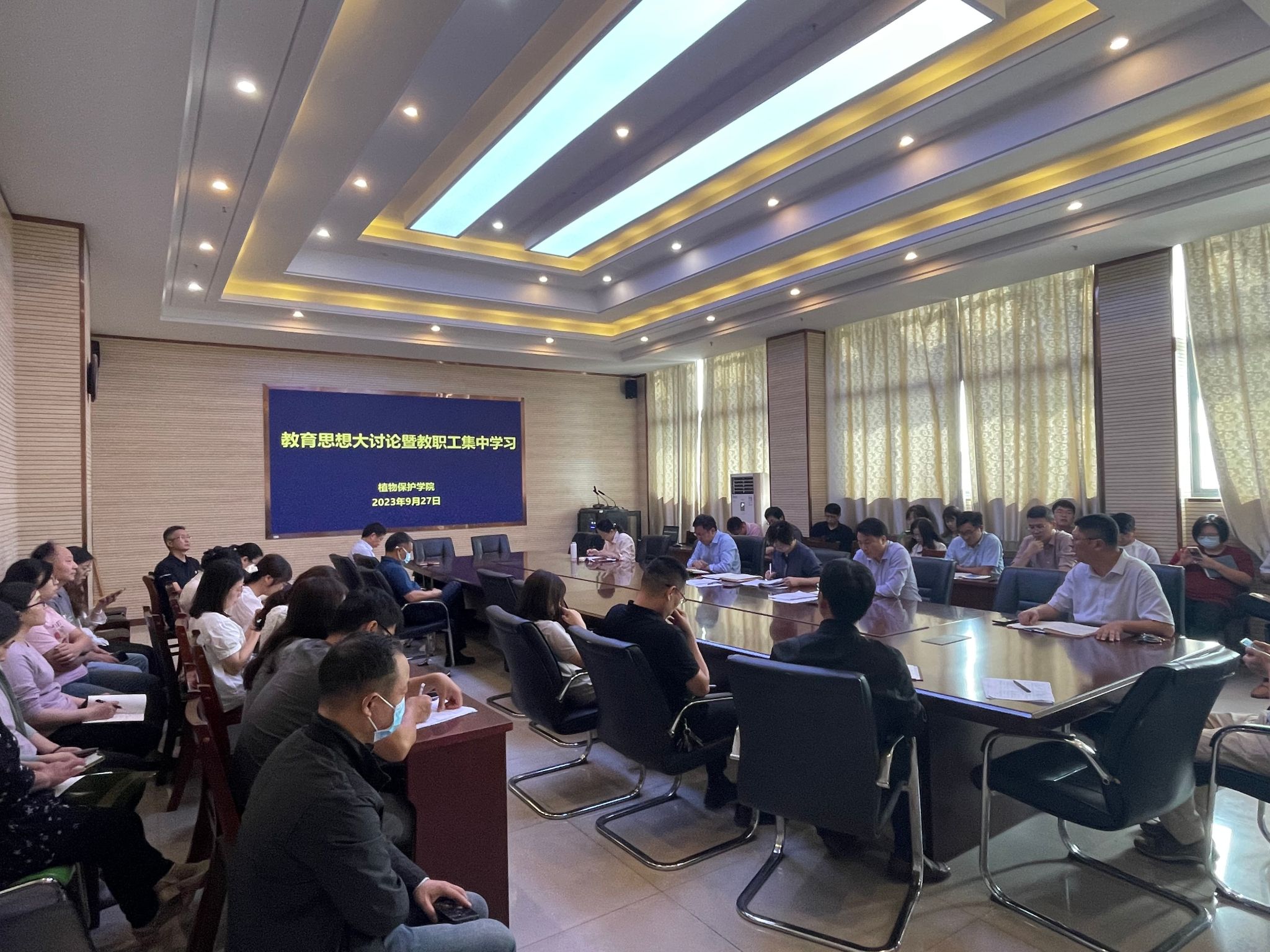 本网讯 9月27日下午,植物保护学院在中西部工程楼1213会议室先后召开教职工大会、党委中心组学习会,在全院范围内部署推动教育思想大讨论。学院领导班子及全体教职工参加了会议,会议由学院党委书记刘柳主持。