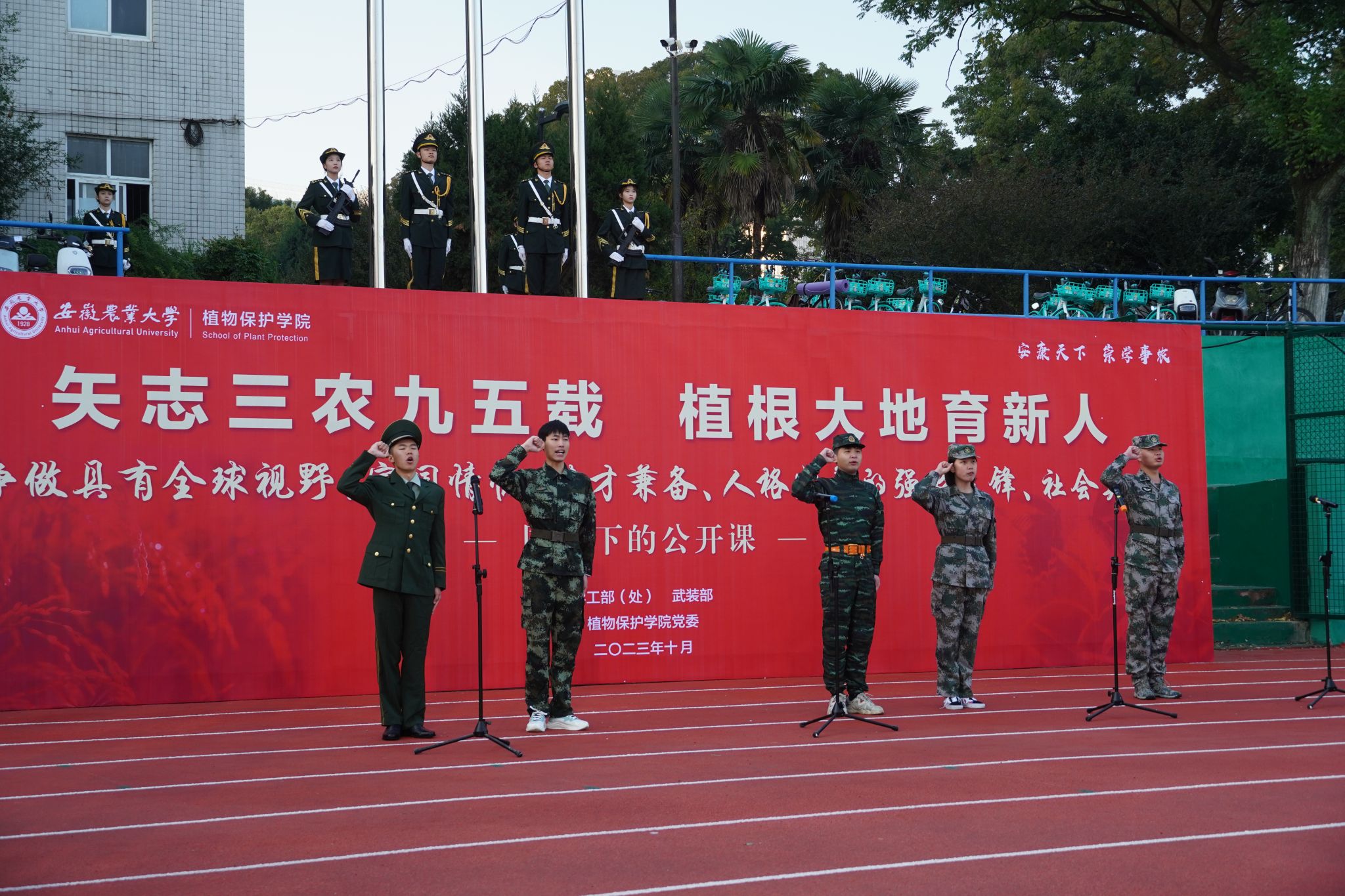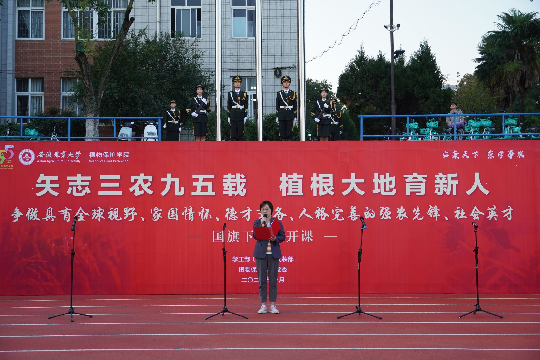 本网讯 金秋十月,迎着清晨的第一缕朝阳,10月23日早7时许,植物保护学院在第一运动场举办95周年校庆主题升旗仪式暨国旗下的公开课活动。校党委学工部(处)、武装部负责同志出席活动。学院党政领导班子成员、全体专兼职辅导员和班主任,全体本科生、硕士研究生、博士研究生参加活动。升旗活动由学院党委副书记汪小强主持。
