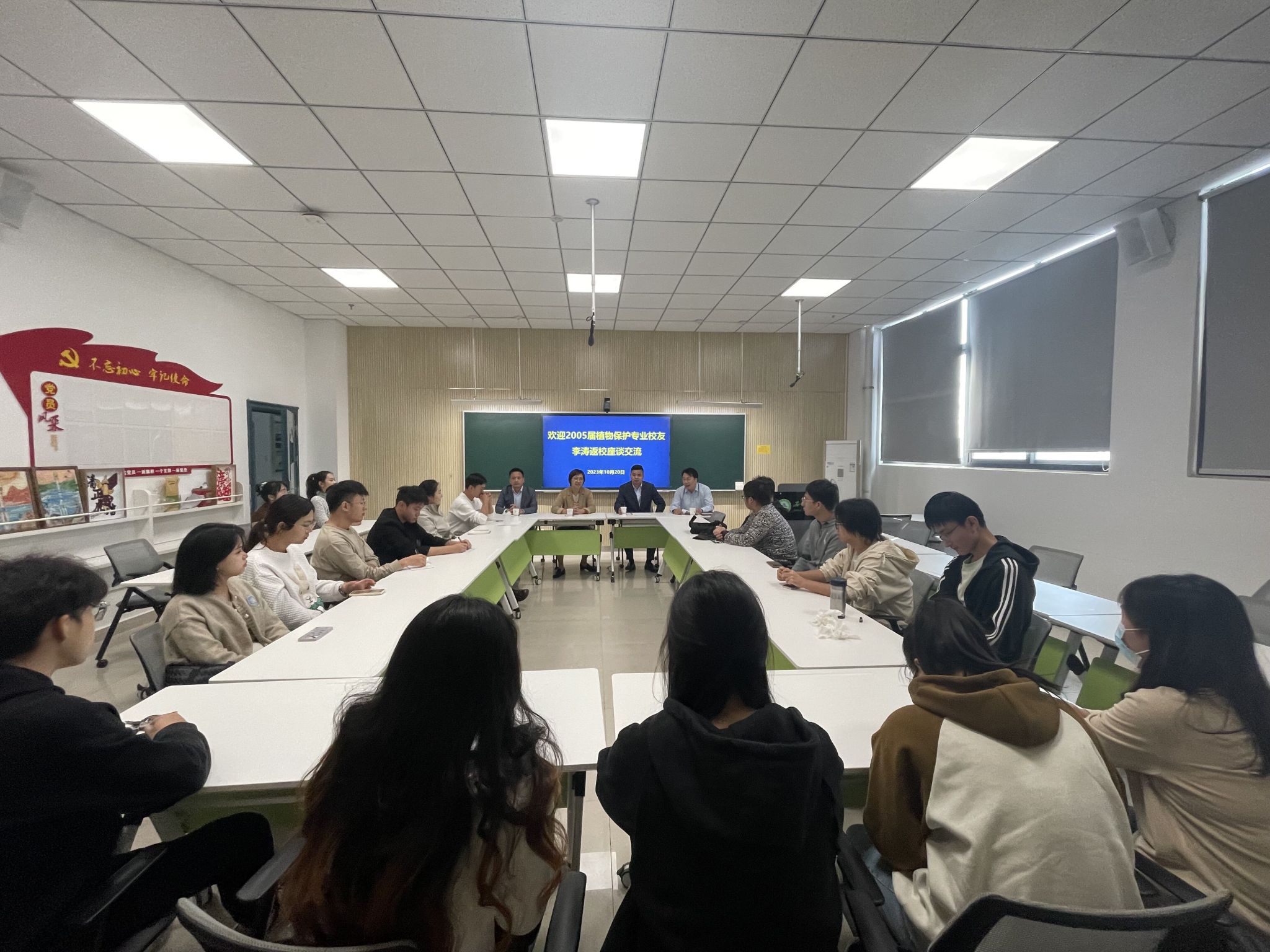 本网讯 10月20日,植物保护学院邀请邀请2005届植保专业毕业生、杭州欢田喜地农业科技有限公司创始人李涛来院开展“名企零距离”活动暨优秀校友报告活动。学院党委书记刘柳、党委副书记汪小强、教授代表郭敏及部分毕业生代表参加了活动。
