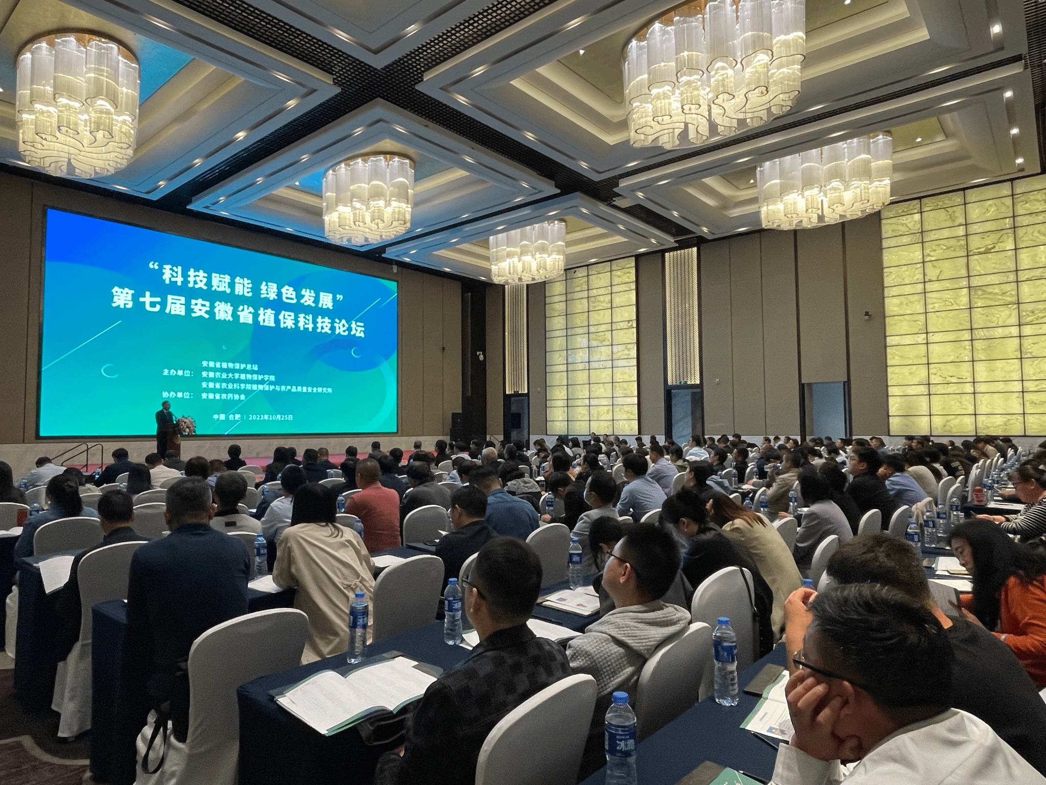 本网讯 10月25日,由安徽省植物保护总站、我校植物保护学院、安徽省农科院植保质安所共同主办、安徽省农药协会承办的第七届安徽省植保科技论坛在合肥成功举办。大会以“科技赋能植物保护 助力粮食产能提升”为主题,全省植保领域政府部门、高校、科研院所、基层站点、企业、农业生产一线共计200余人到场参会。