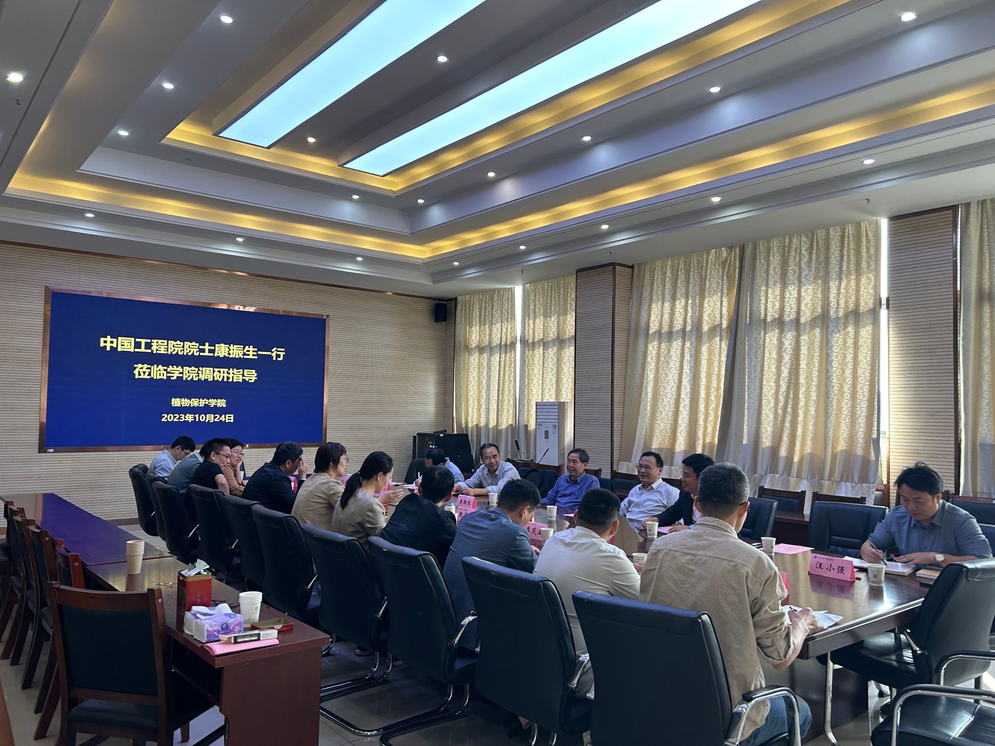 座谈交流期间,康振生院士听取了院长潘月敏围绕植物保护学院十四五发展概况和副院长张华建关于创新团队建设工作等方面进展情况的汇报。康振生院士表示,学院植保学科发展势头良好,人才队伍年轻化,希望在今后能够在学院高质量发展和学科优化等方面再接再厉,着力服务地方经济发展,稳步提升植物保护学院综合实力。