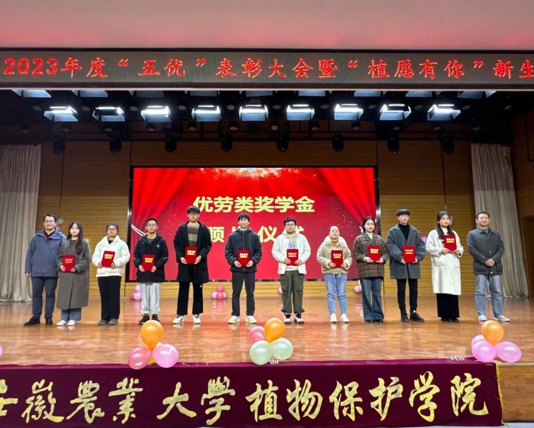 校党委宣传部常务副部长姚莉老师为“优中优”奖学金获奖团队、获奖同学颁奖。其中,“优中优”团队奖学金中,科技夺粮——草地贪夜蛾防控新技术助力国家粮食安全团队在第十八届“挑战杯”大学生课外学术科技作品竞赛获得国家二等奖、在第九届安徽省“互联网+”大学生创新创业大赛省级银奖;“优中优”个人奖学金中,2020级3班植物保护专业庞惠文、2021级植物保护专业5班柴茵、2021级植物保护专业3班杨楚瑜获得“三优奖”。