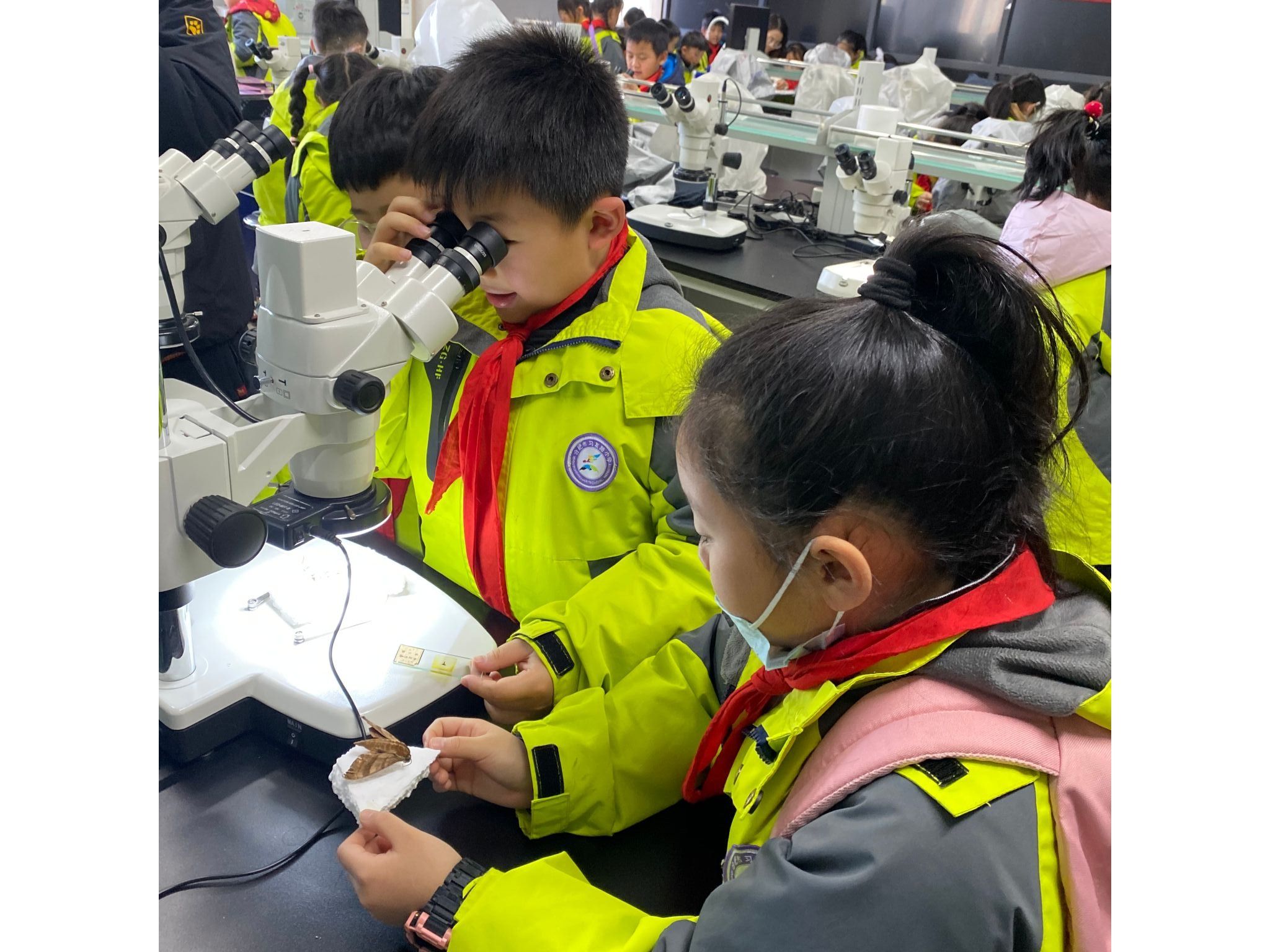 实验教学中心老师有序引导小学生们利用显微镜观察昆虫标本,各类昆虫标本也让学生们大开眼界,极大地调动了学生们对昆虫世界的浓厚兴趣;活动现场,学生们热情高涨,争先恐后地向老师提问。随后,学生们参观了安徽农业大学蜜蜂研究所,观察了中华蜜蜂和意大利蜜蜂蜂群的蜂巢,了解了蜜蜂的生活习性。