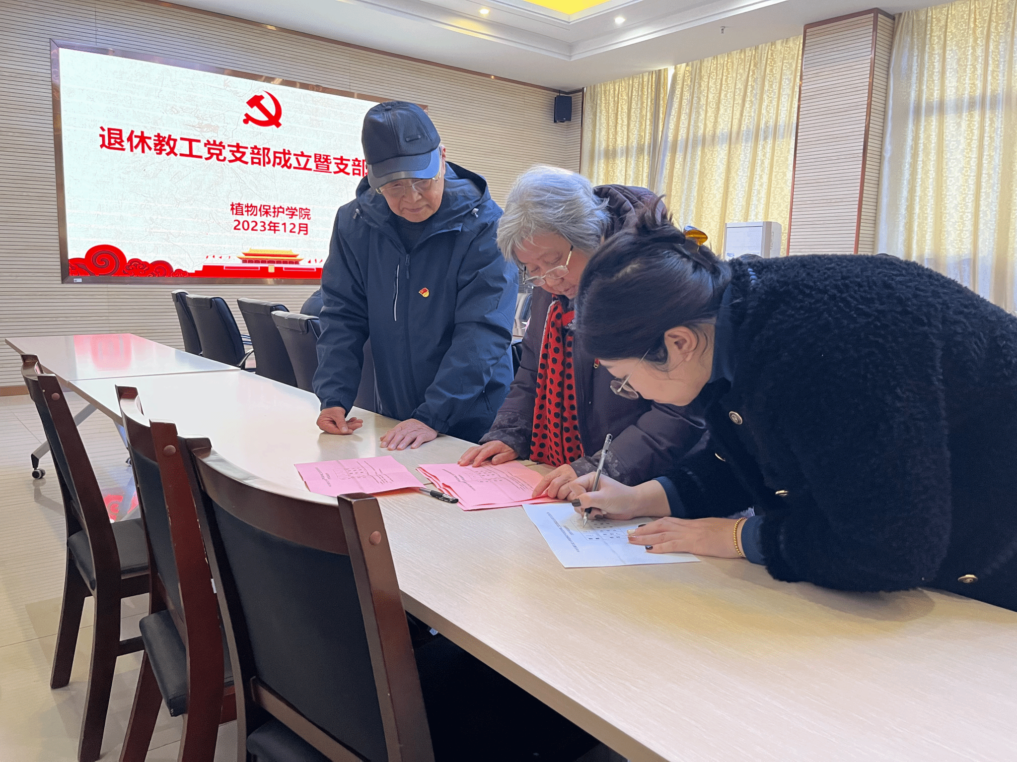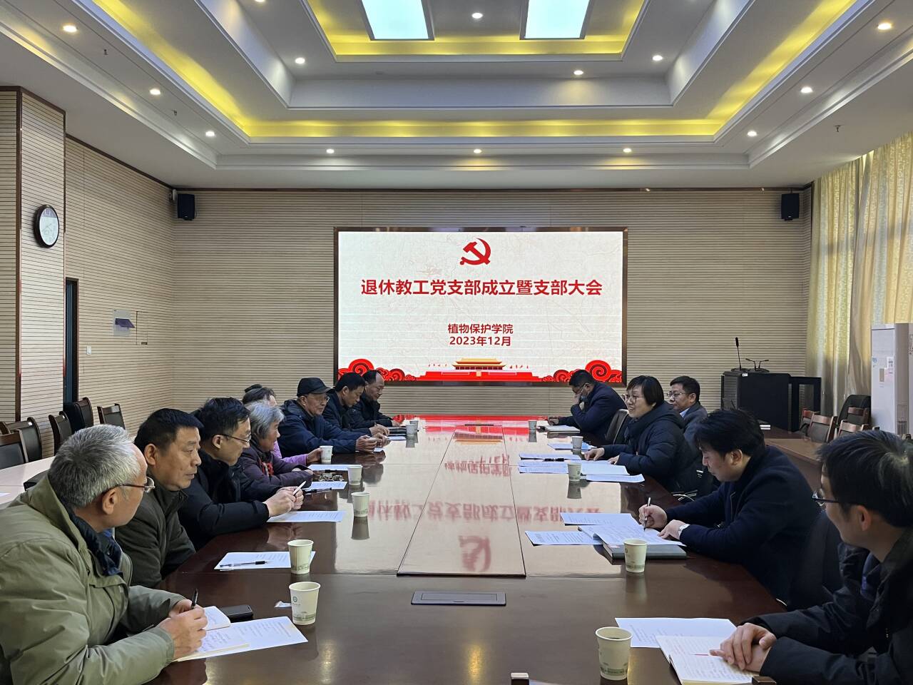 本网讯 根据校党委组织部《关于加强新时代离退休干部党的建设工作的若干举措》(组字〔2023〕16 号)文件要求,为进一步健全学院党组织结构、加强学院退休教工党建工作,12月27日下午,植物保护学院退休教工党支部成立暨支部大会在中西部综合楼1213会议室召开。学院党政领导、教工党支部书记和退休教工党员参加会议,会议由院党委书记刘柳主持。