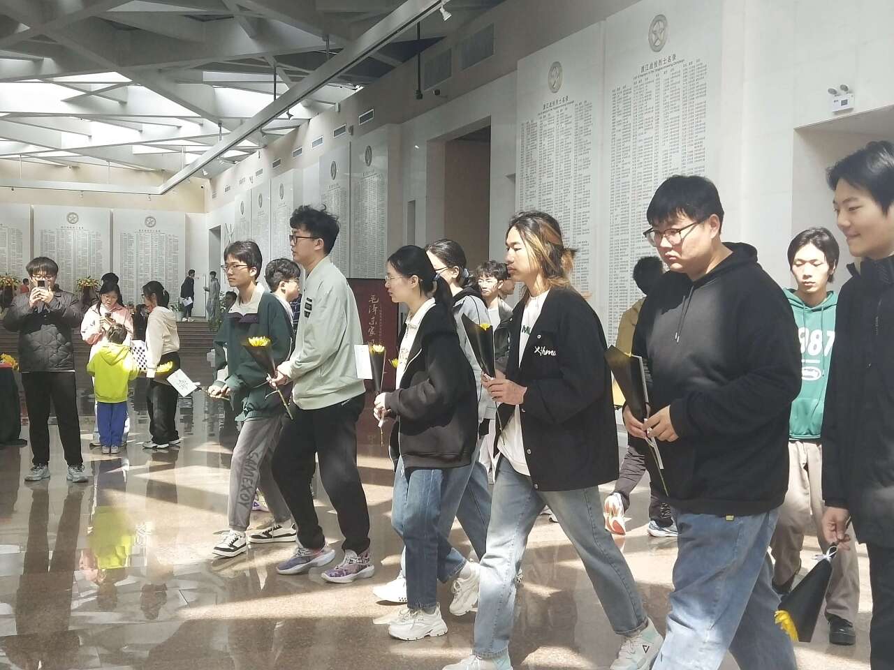 通过一张张照片、一个个展品、一件件物品,同学们聆听革命先烈的故事,领悟伟大领袖的纯朴家风。大家驻足在烈士名单墙、寄语墙和留言板前,敬上鲜花和明信片,虔诚地向先烈们行三鞠躬礼。同学们纷纷表示:“回顾来时路,我们从未忘记,万里锦绣都是先烈们曾守护过的山河。幸得有他们,山河已无恙,华夏不复殇。”“饮水思源,我们都应珍惜今天的太平来之不易。铭记历史,吾辈当自强。”纪念馆内还组织观看了清明节爱国教育主题活动。