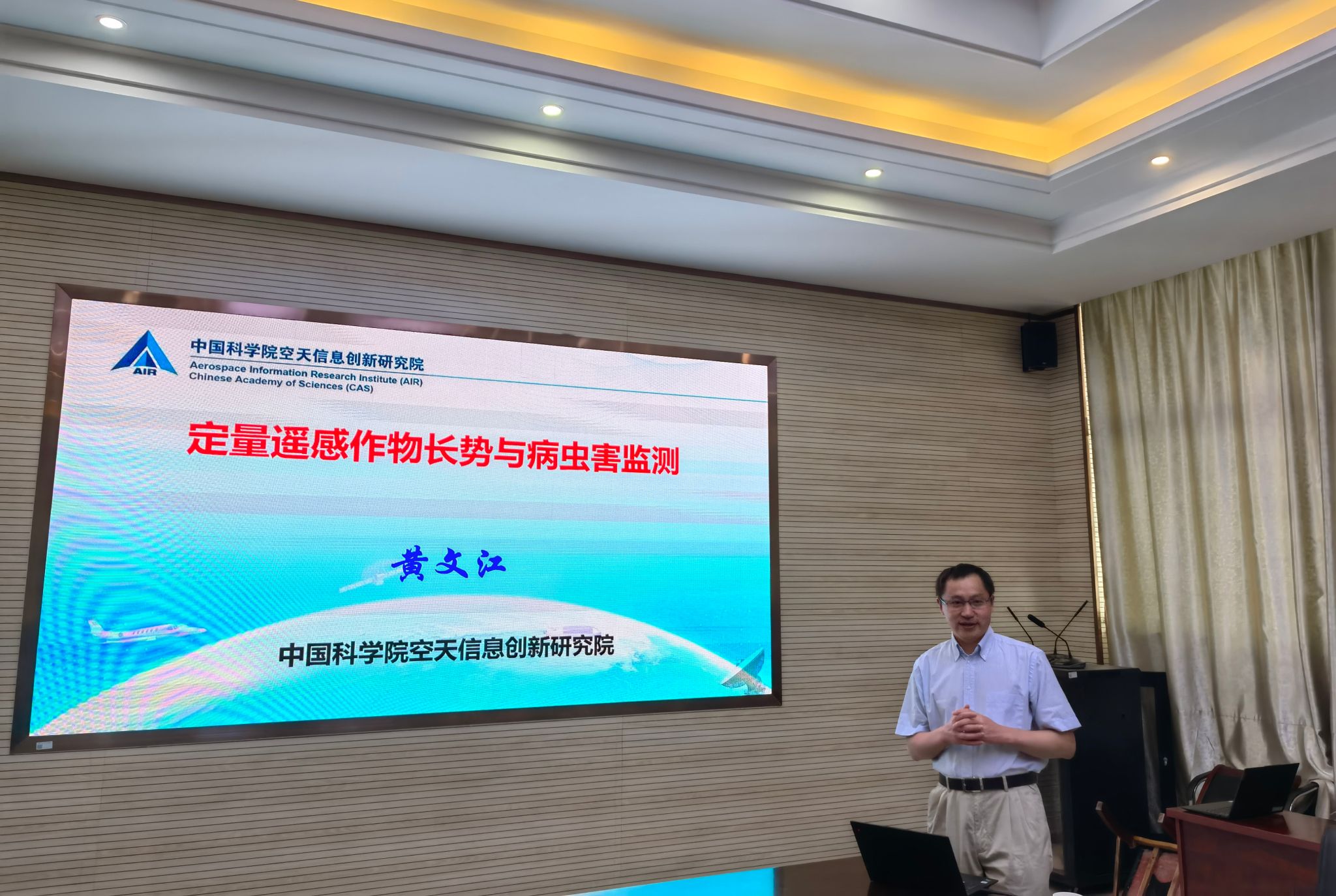 本网讯 6月5日上午,中国科学院空天信息创新研究院黄文江研究员应邀来给我院师生作专题报告,院长潘月敏主持报告会。
