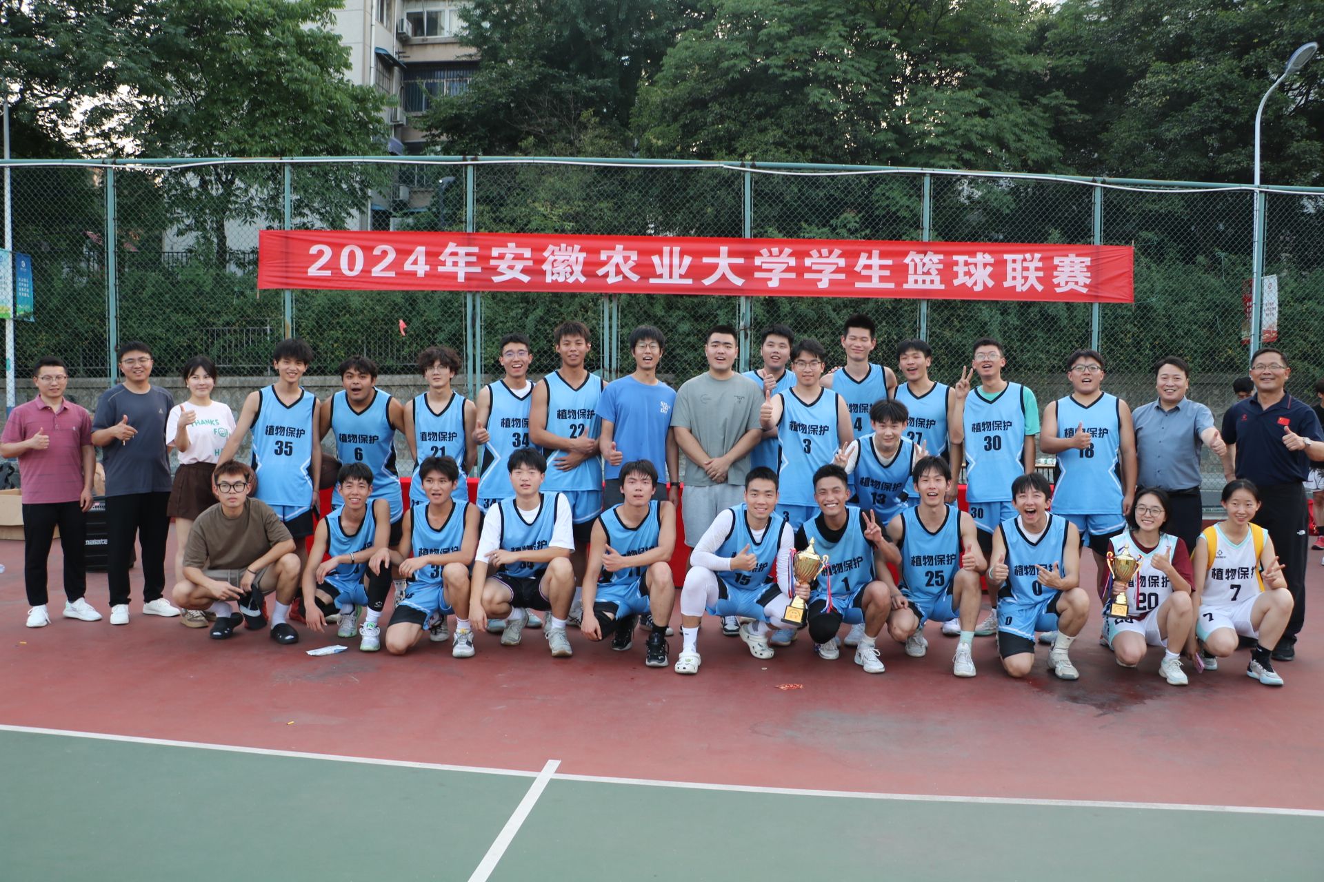 我院在校2024年学生篮球比赛中斩获佳绩 发布时间:2024-06-13 浏览次数: 本网讯 6月12日下午,2024年安徽农业大学学生篮球比赛于第二运动场落幕。经过精彩又激烈的角逐,我院最终取得了男篮亚军、女篮第八的好成绩。据悉,本次比赛为期7天,共60场比赛,有来自全校15个学院的27支队伍参赛。(文图/张小龙 编辑/丁放 预审/汪小强 审核/刘柳)