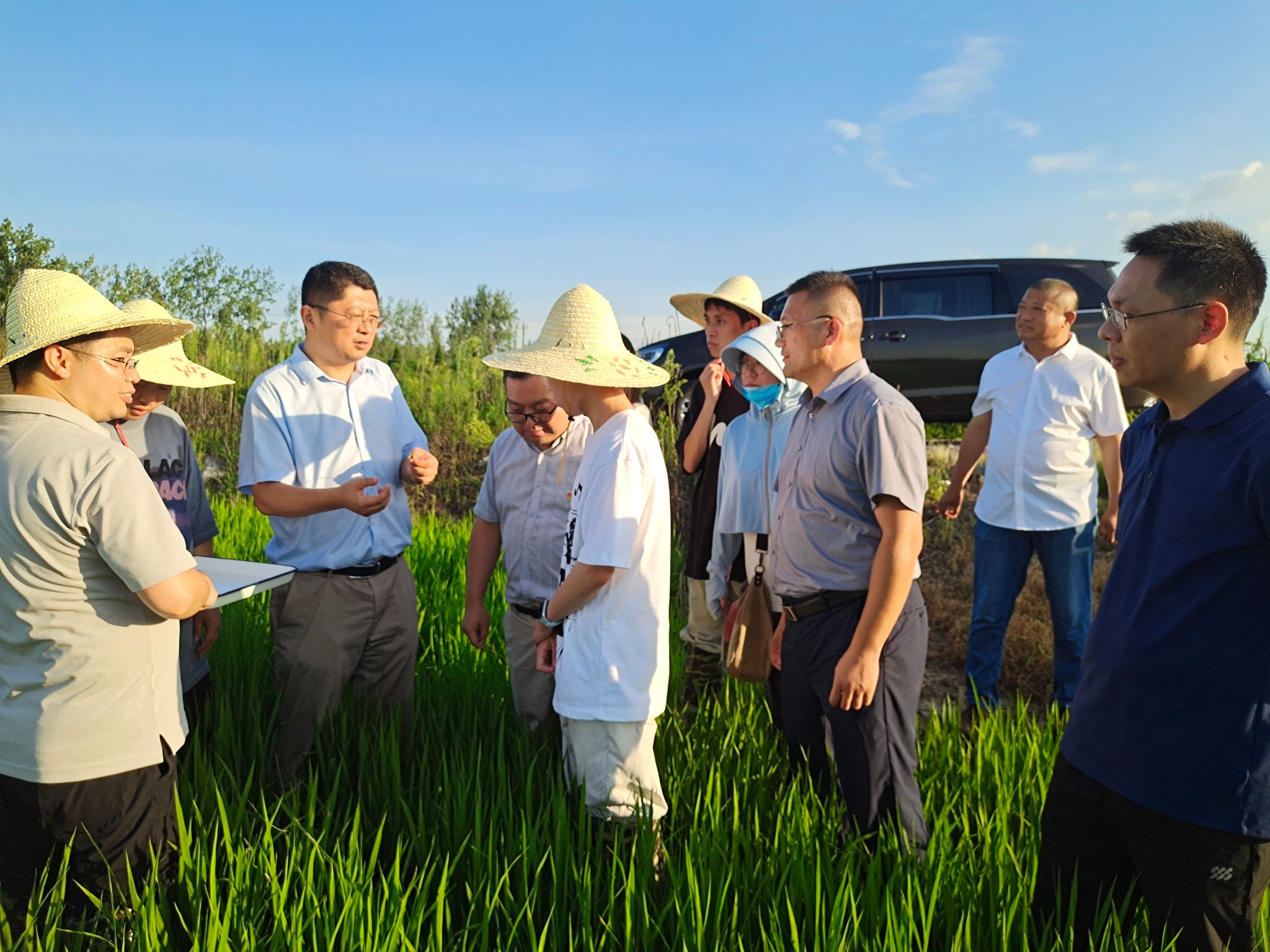 本网讯 结合生产实习巡检工作安排,7月25-27日,学院副院长唐庆峰教授、李淼教授、陆思含老师、丁朝阳老师、周宗美老师和当地植保站负责人,赴滁州市南谯区、天长市、明光市,走进田间地头,针对当地作物和气候条件、作物类型和病虫草害发生特点等,开展相关教学实践课,指导学生实习、对农户进行技术指导和科技帮扶。