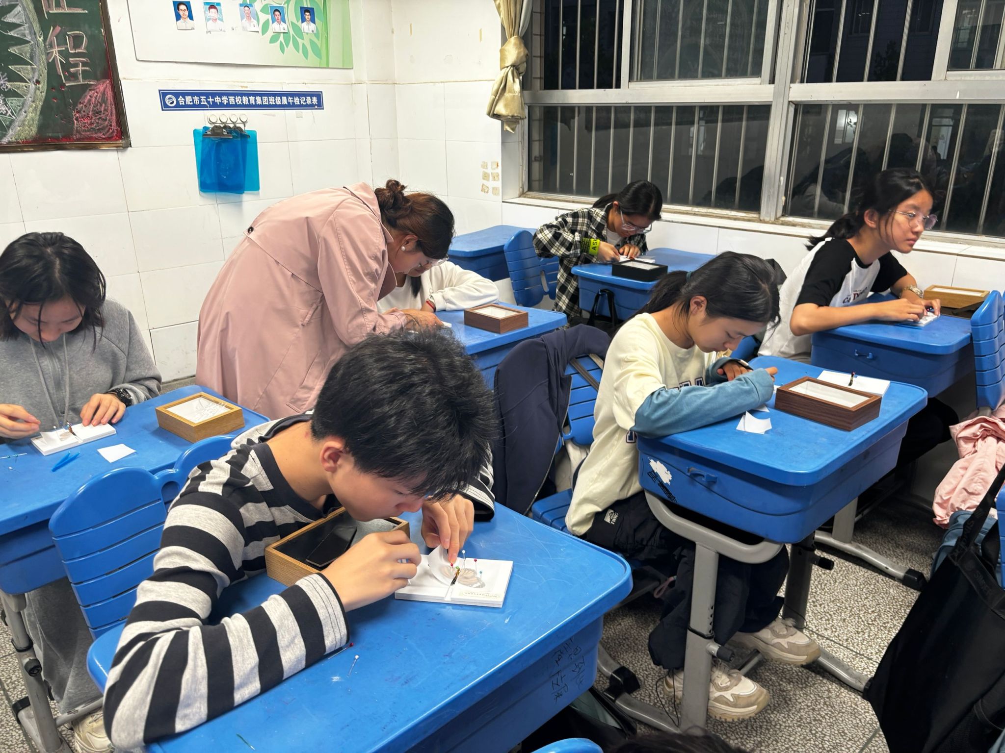 3.标本制作实践操作:在活动的最后阶段,同学们在专业老师的指导下,亲手制作了蝴蝶标本。从挑选材料、处理标本到最终成型,每一步都充满了挑战与乐趣。通过实践操作,学生们不仅学会了标本制作的基本技能,也对蝴蝶的形态结构有了更深入的认识。