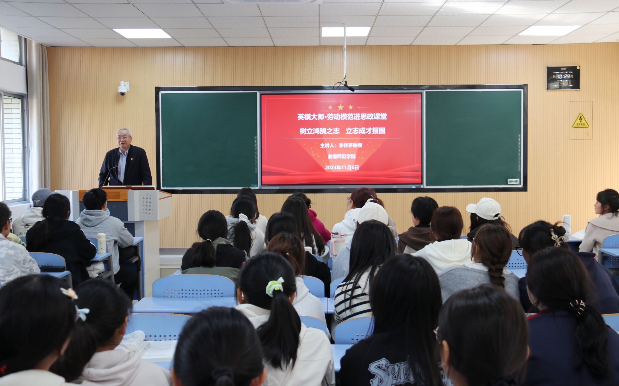 学院退休教工党员全国模范教师李桂亭教授,全省先进工作者、长三角劳模高智谋教授应邀开展题为“树立鸿鹄之志 立志成才报国”的英模大师·劳动模范进思政课堂活动。两位老师结合自身经历为同学们上了一堂生动的思政课。