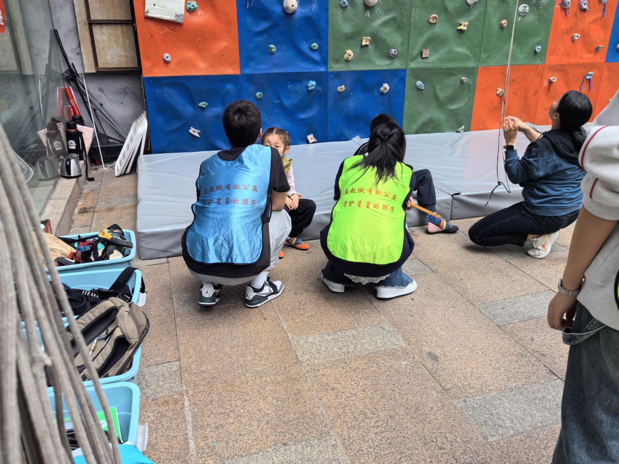 在“孤独症儿童攀岩干预治疗公益课堂”中,志愿者面对面接触了一个“独特”的群体——来自星星的孩子。在互动中,她们展现出了十足的耐心和热情,细心引导和帮助孩子们成功克服了内心的恐惧,完成了攀岩这一看似不能完成的任务。