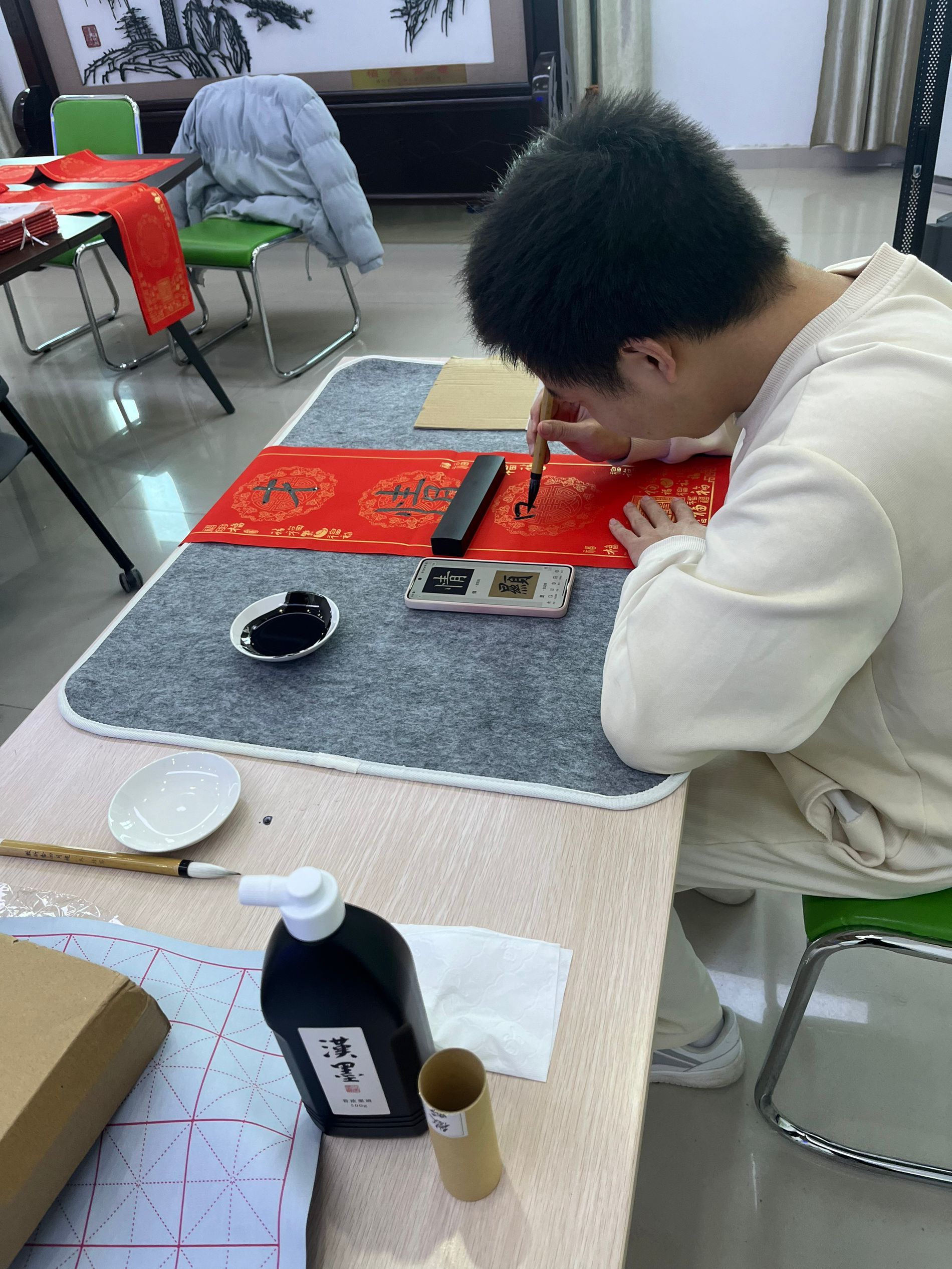 本网讯 为弘扬中华优秀传统文化,营造文明祥和的节日氛围,1月12日,植物保护学院研究生分会于中西部楼1214室举办了“同心筑梦贺新春 墨香四溢送福联”活动。