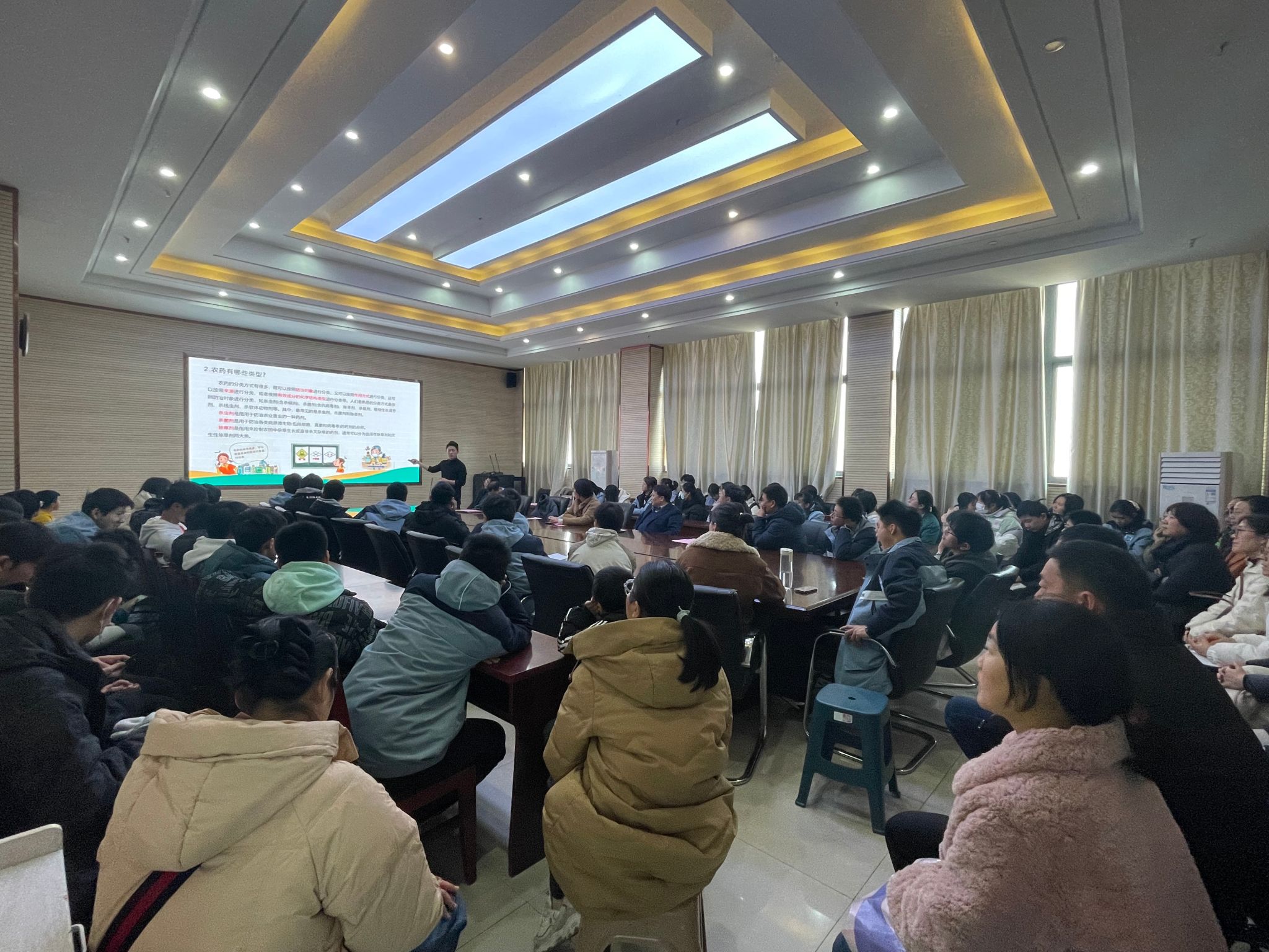 活动伊始,刘柳对合肥七中师生、家长的到来表示热烈欢迎,并简要介绍了植物保护专业的发展历程、研究领域以及未来前景。学院教授党向利、刘威、陈静、罗健分别为同学们带来一场生动有趣的科普讲座。党向利教授从“什么是昆虫”“昆虫的一生”“昆虫与我们的关系”深入地介绍了昆虫特征、种类、习性等特征;刘威教授从“宿主与微生物组共生理论”“资源昆虫开发利用”讲解了微生物对人类生活的作用;陈静教授从病毒的形态结构、病毒的生命活动、病毒与人类的关系带领同学们领略植物与病毒研究的意义;罗健从农药的类型、绿色农药、农药残留带领同学们了解了农药的研发过程。讲座过程中,同学们认真聆听,积极互动,现场气氛热烈。