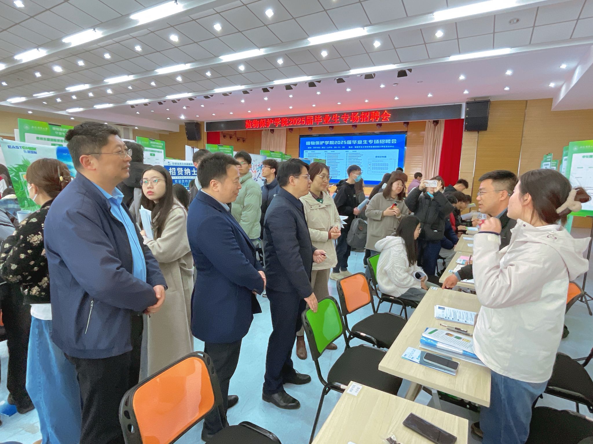 本网讯 为搭建优质就业平台,深化校企合作,助力2025届毕业生高质量就业,3月19日,植物保护学院2025届毕业生专场招聘会在欣苑四楼大学生活动中心举办。校党委常委、副校长吴祥为出席活动,现场与企业、毕业生深入交流,关心企业招聘需求和学生就业意愿。学院领导班子、系主任、教师、毕业班辅导员班主任及2025届研究生和本科毕业生到场参加。