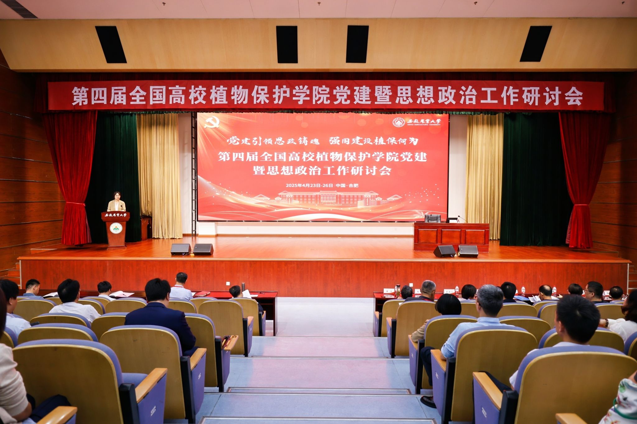 本网讯 4月23-26日,由我院承办的第四届全国高校植物保护学院党建暨思想政治工作研讨会在学校成功举办。校党委副书记、校长操海群在会议期间会见了参会代表,校党委副书记董雨出席开幕式并致辞。来自全国36所高校的120余位代表参加会议。