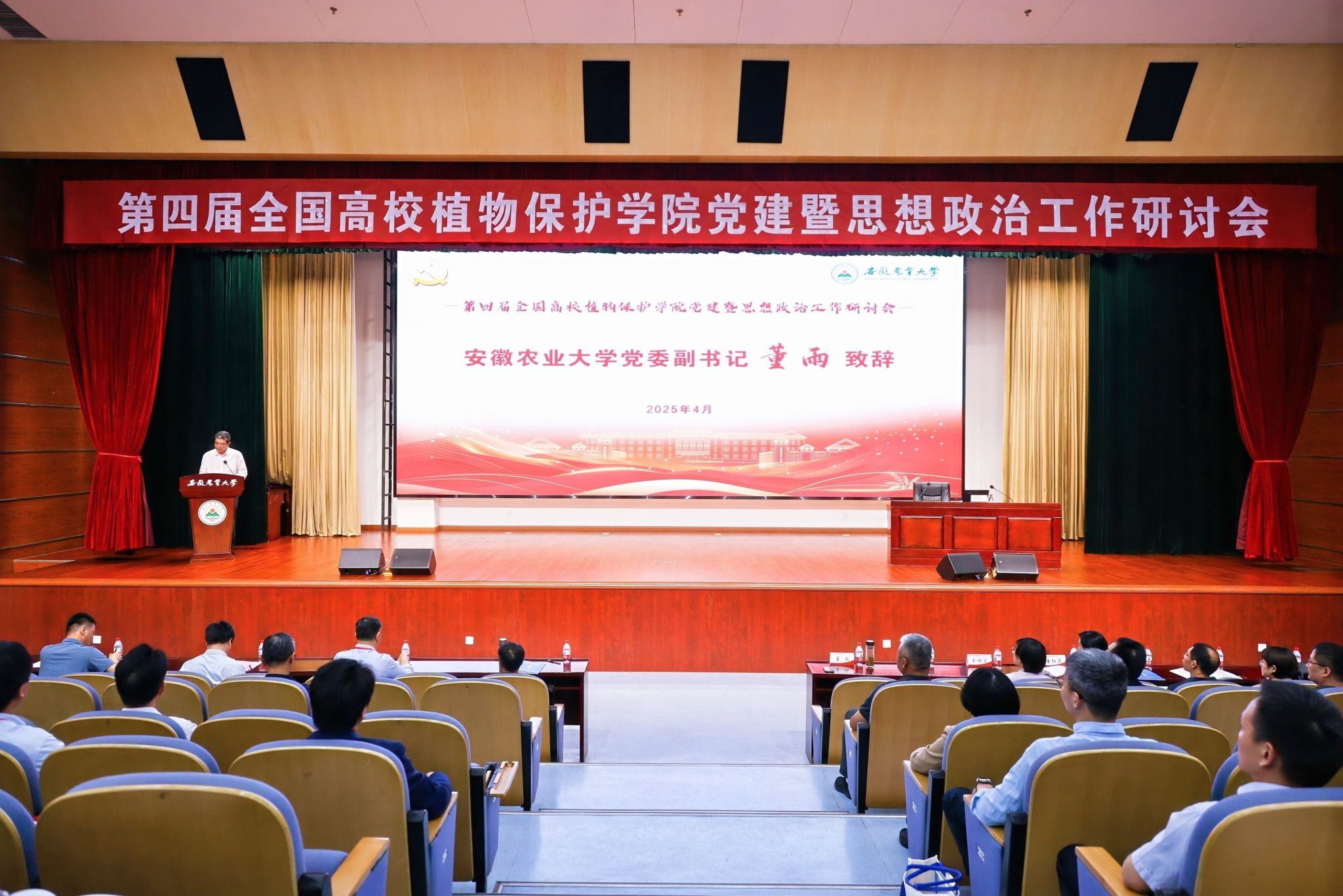 董雨在致辞中对会议的召开表示祝贺,对参会高校代表们的到来表示欢迎,并介绍了学校发展情况。他指出,此次会议以“党建引领思政铸魂、强国建设植保何为”为主题,大家共同探索加强新时代新征程植保学科党建思政工作的新思路、新路径,这不仅是深入学习贯彻习近平总书记关于党的建设的重要思想、关于教育和“三农”工作重要论述的实际行动,也是贯彻落实教育和农业两个强国规划以及第二十八次全国高校党的建设工作会议精神的具体举措。他希望,通过此次会议,与各兄弟高校代表加强交流、互学互鉴,深入探讨植保学科党建思政工作的好经验、好方法,赓续传统友谊,携手开创未来,共同谱写新时代植保学科党建思政发展的新篇章,为服务保障国家粮食安全、培养新时代新农人作出更多贡献。