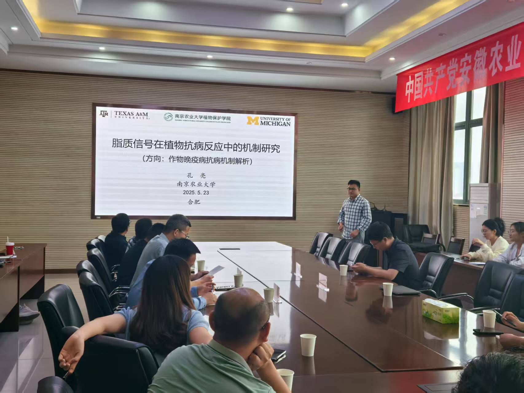 孔亮教授报告的主题为脂质信号在植物抗病反应中的机制研究。破解植物免疫信号组分是改良作物抗性的基础,孔教授团队通过磷酸酯PA为切入点,解析PA调控PTI和ETI免疫信号的机理,为病害防控提供新的防控策略。