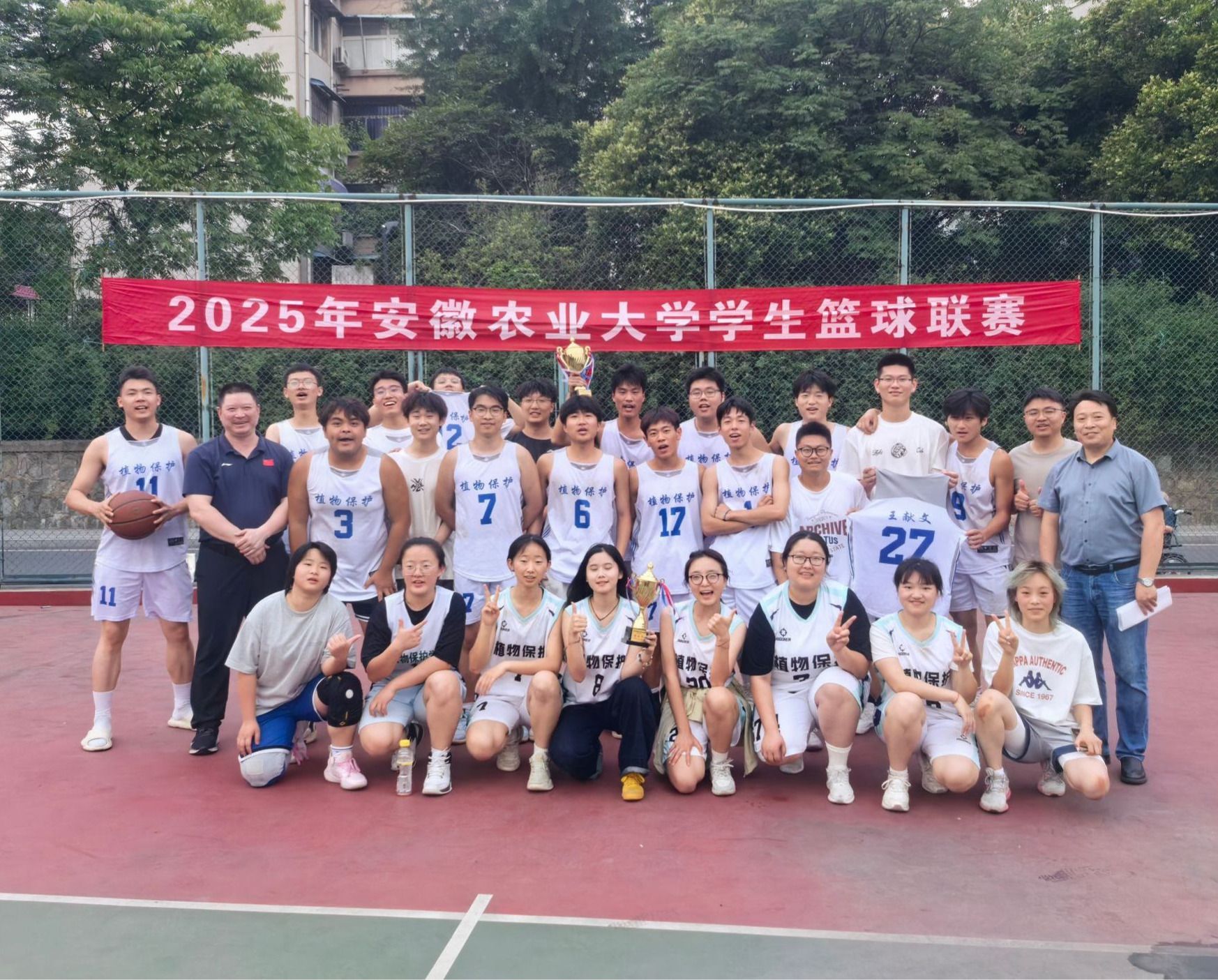 本届联赛中,植物保护学院男篮和女篮发扬优良传统,坚持打好每一场比赛和场上的每一分钟,面对强敌敢打敢拼,顽强防守,在小组赛和淘汰赛中分别鏖战加时,最终以两分优势险胜对手。赛后,男篮队长兼女篮教练杨凯表示:“每一场胜利都离不开大家顽强的拼搏、场下数百次的训练和出色的团队配合,更离不开学院师生的加油助威。期待明年取得更好的成绩。”