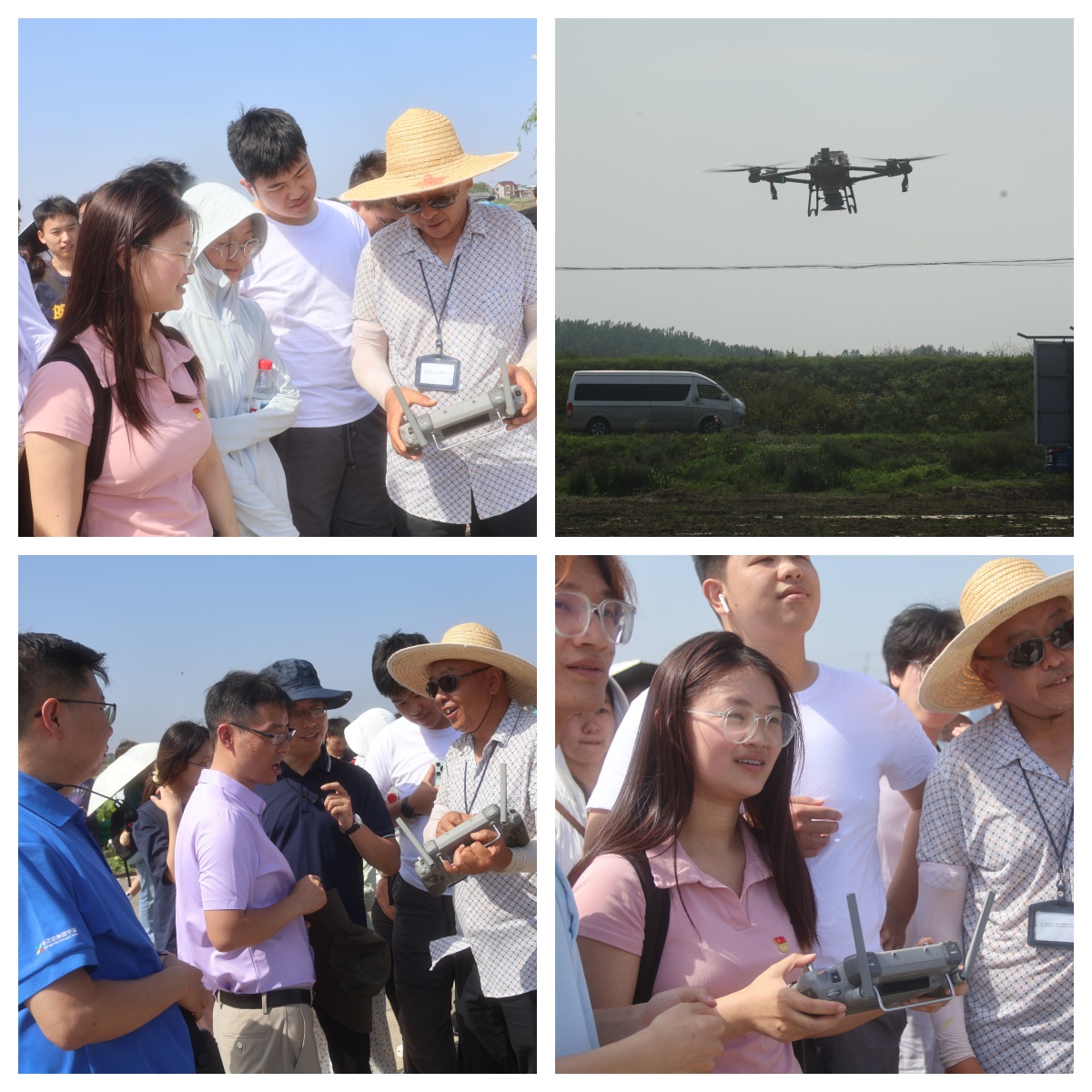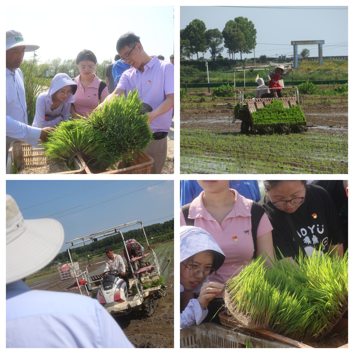 李元斌实地演示了农业高效无人机的工作流程,起飞、飞行、喷洒过程一气呵成,引起了同学们极大的兴趣与探索。随后,技术人员亲自指导同学们完成无人机操作,同学们积极参与其中。张文建介绍了毯苗培育过程和农业插秧机的实际应用,带领同学们近距离观察农业插秧机工作原理。同学们深刻体会到农业插秧机的高效性,直观理解了智慧农业的应用,体会到了理论与实践相结合的重要性。